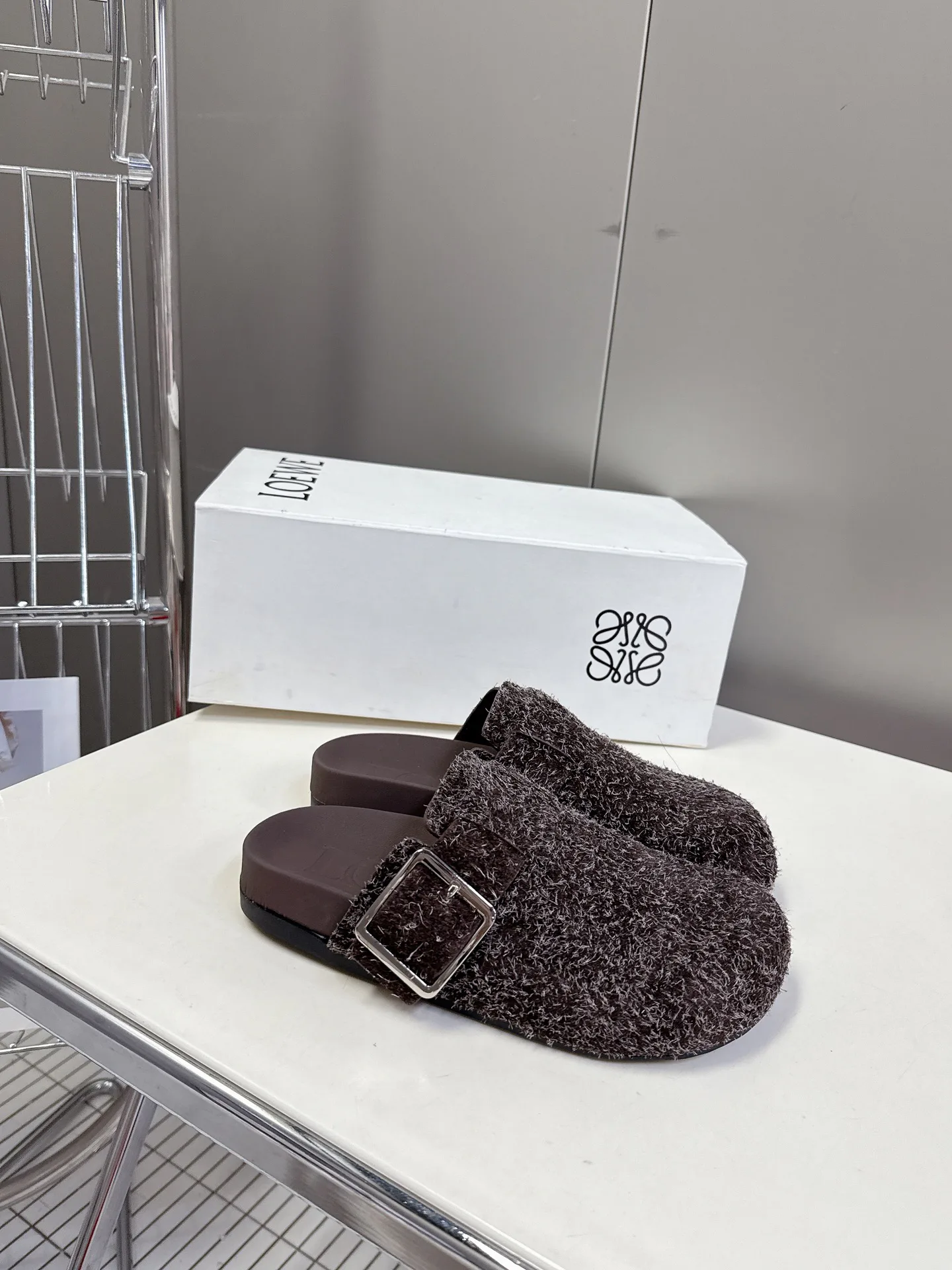 Сабо женские LOEWE — мюли с широкой носовой частью, верх из импортированного замша, внутренняя сторона — смесь овечьей кожи, подошва выполнена по оригинальной форме. Это изделие относится к коллекции в британском стиле. Размеры: 35–40, 40 по заказу. На ноге они обеспечивают комфорт благодаря продуманной посадке и качественной отделке.