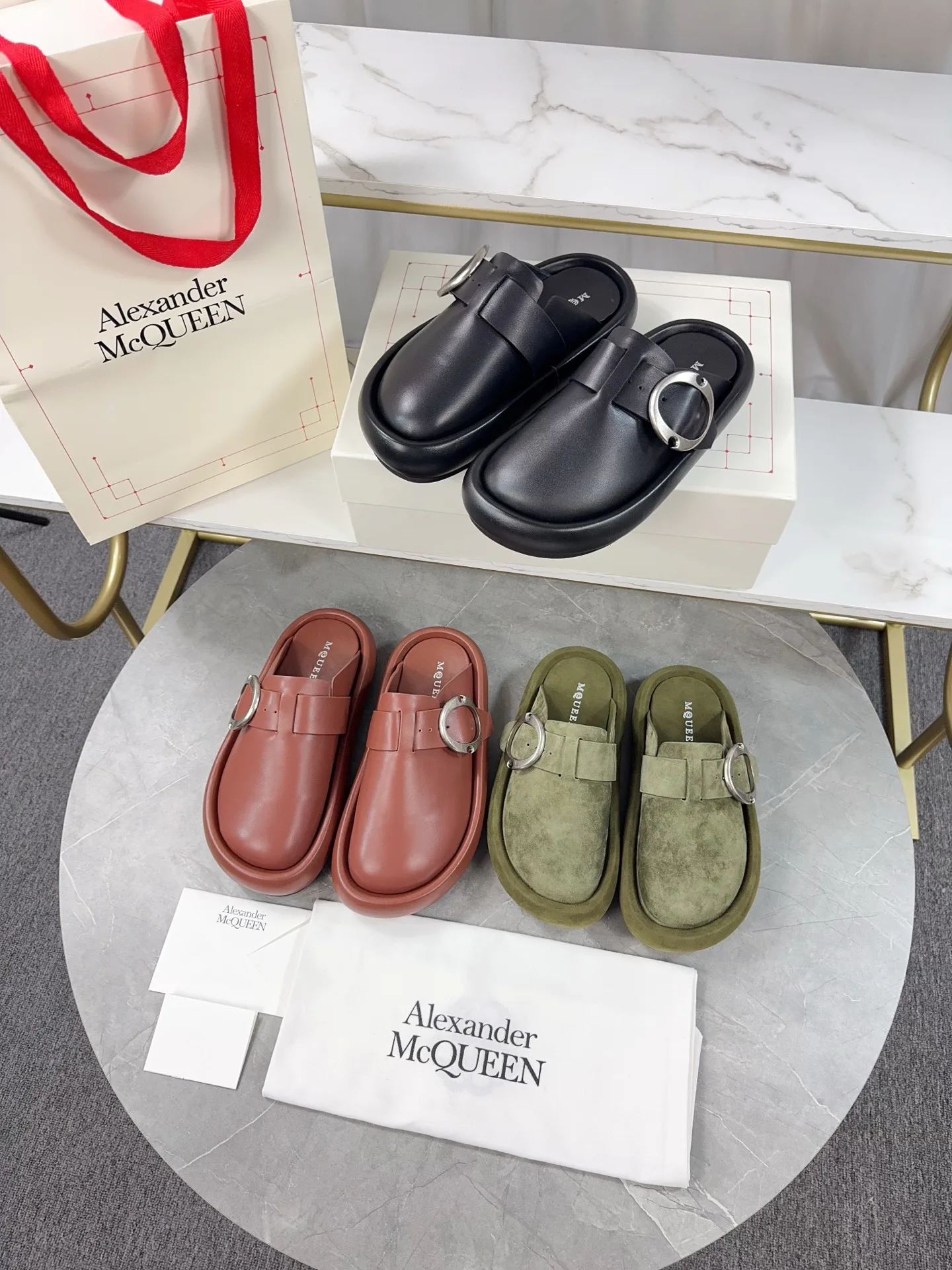 Внутри мюли застегиваются на двойной ряд пряжек, что гарантирует плотную посадку и минимизирует риск натирания. Подкладка из мягкой овечьей кожи добавляет тепло и уют. Эта модель идеально подходит для теплого времени года благодаря открытому дизайну и вентиляции, что сохраняет комфорт во время носки.