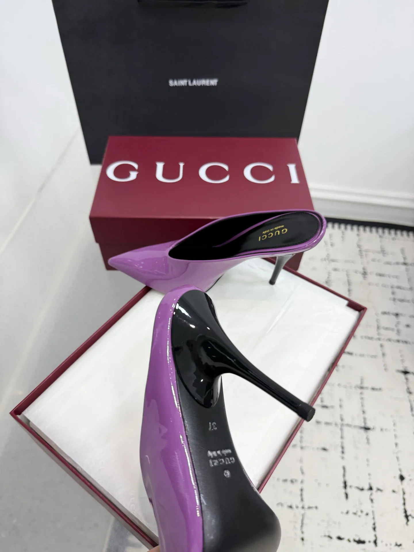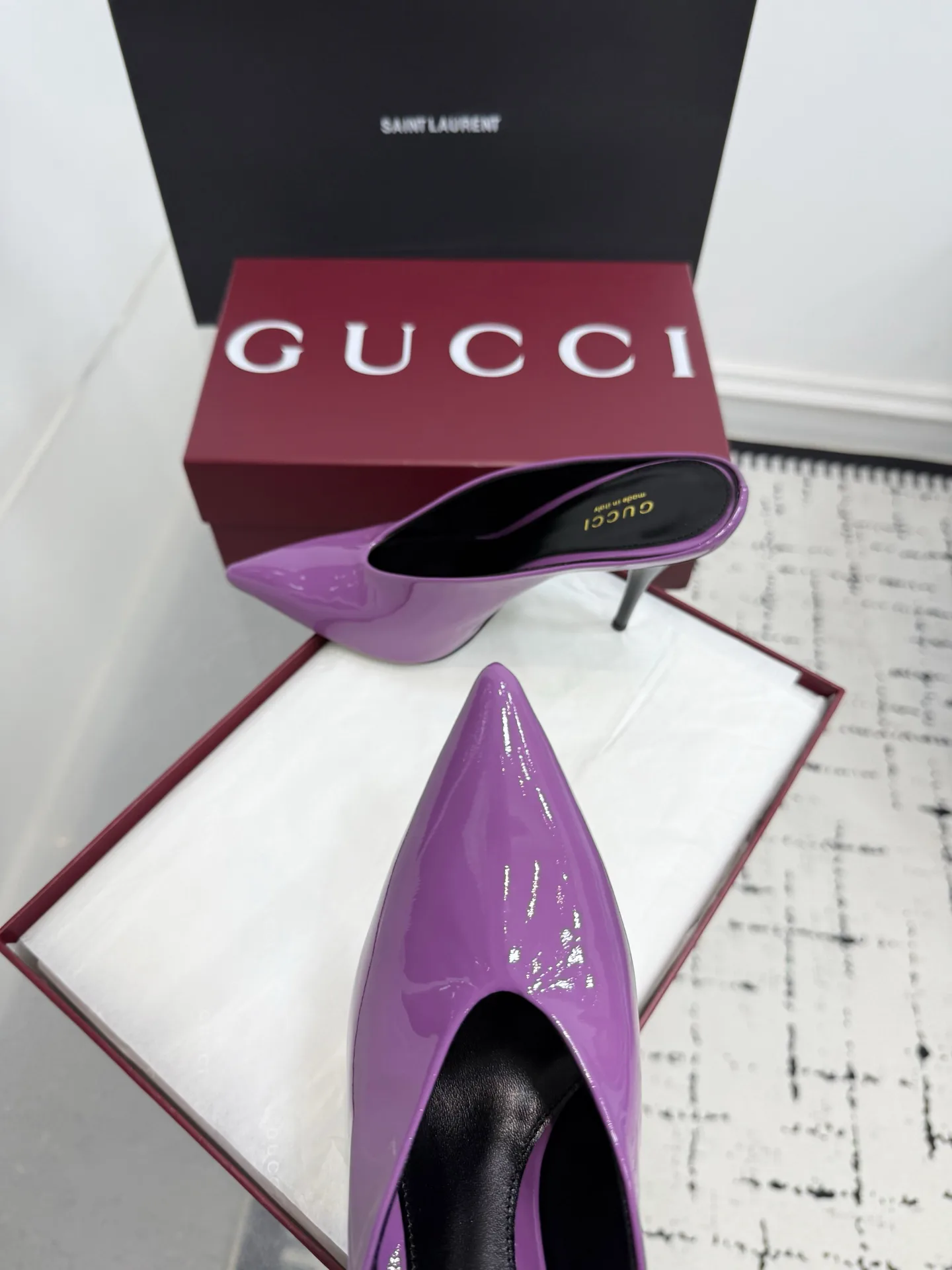 Размерный ряд включает размеры 35–40, с возможностью индивидуального изготовления для 40, 41, 42. Глянцевая лакированная поверхность подчеркивает эффект роскоши. Мюли подходят для вечерних и коктейльных образов в холодный сезон и хорошо сочетаются с пиджаками, костюмами и длинными юбками.