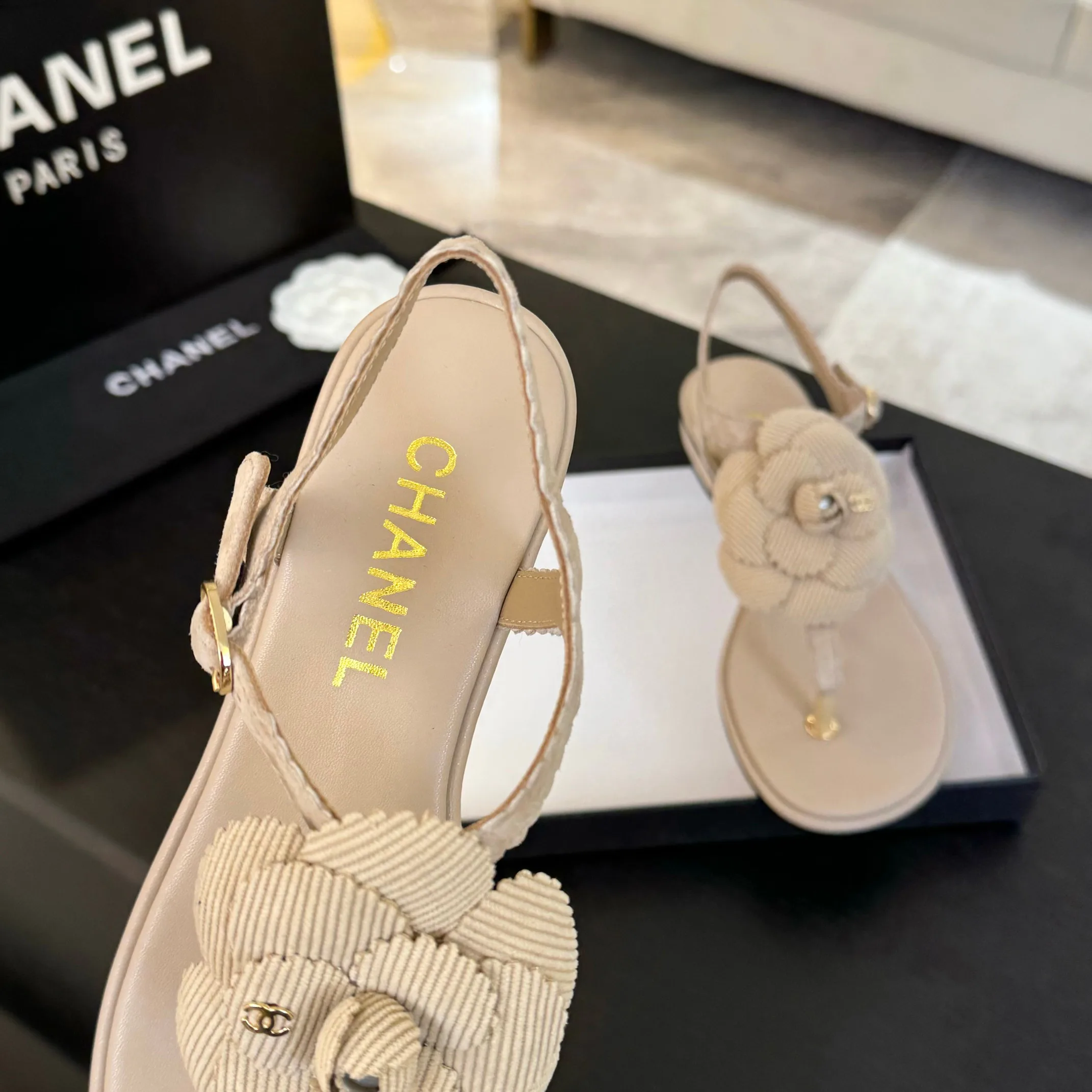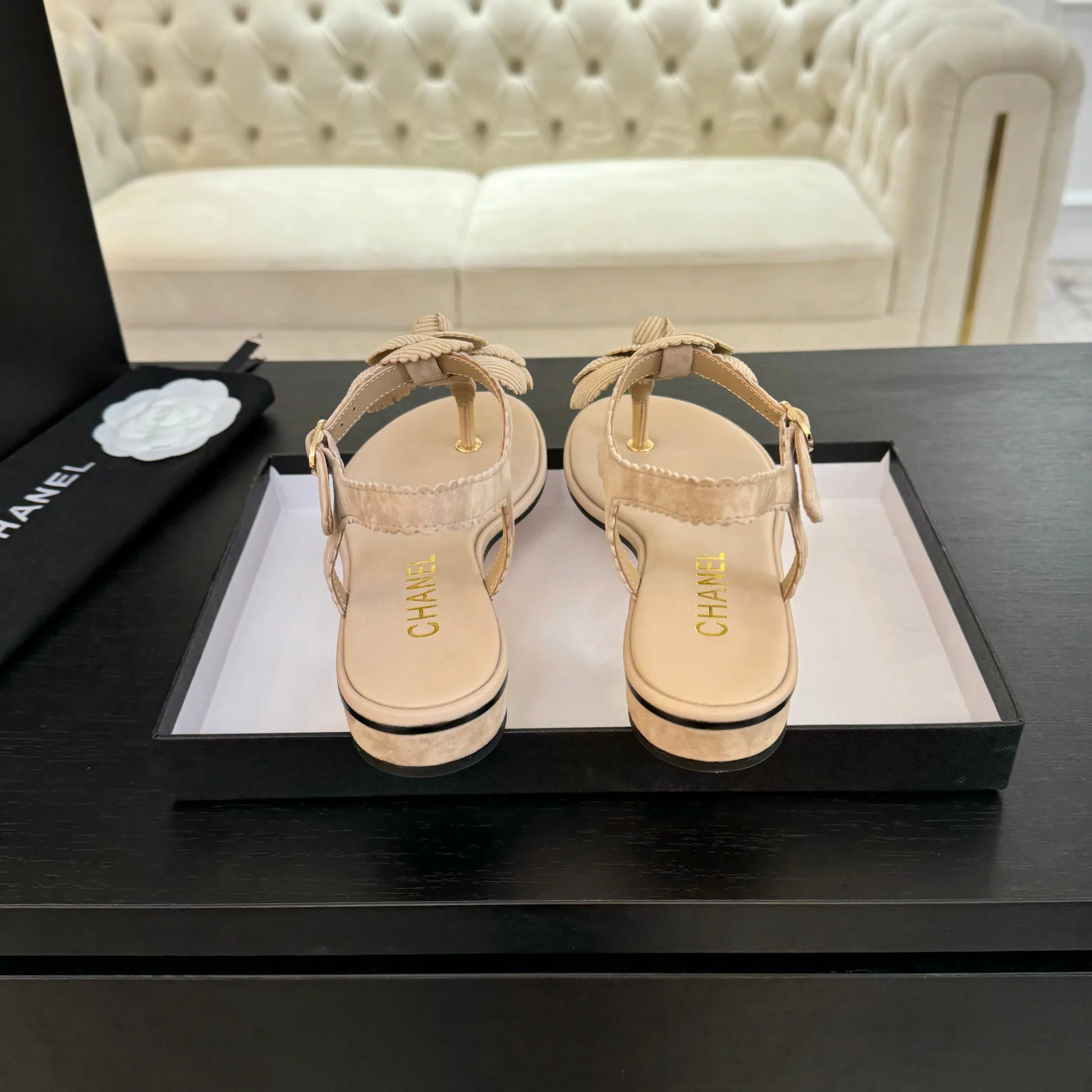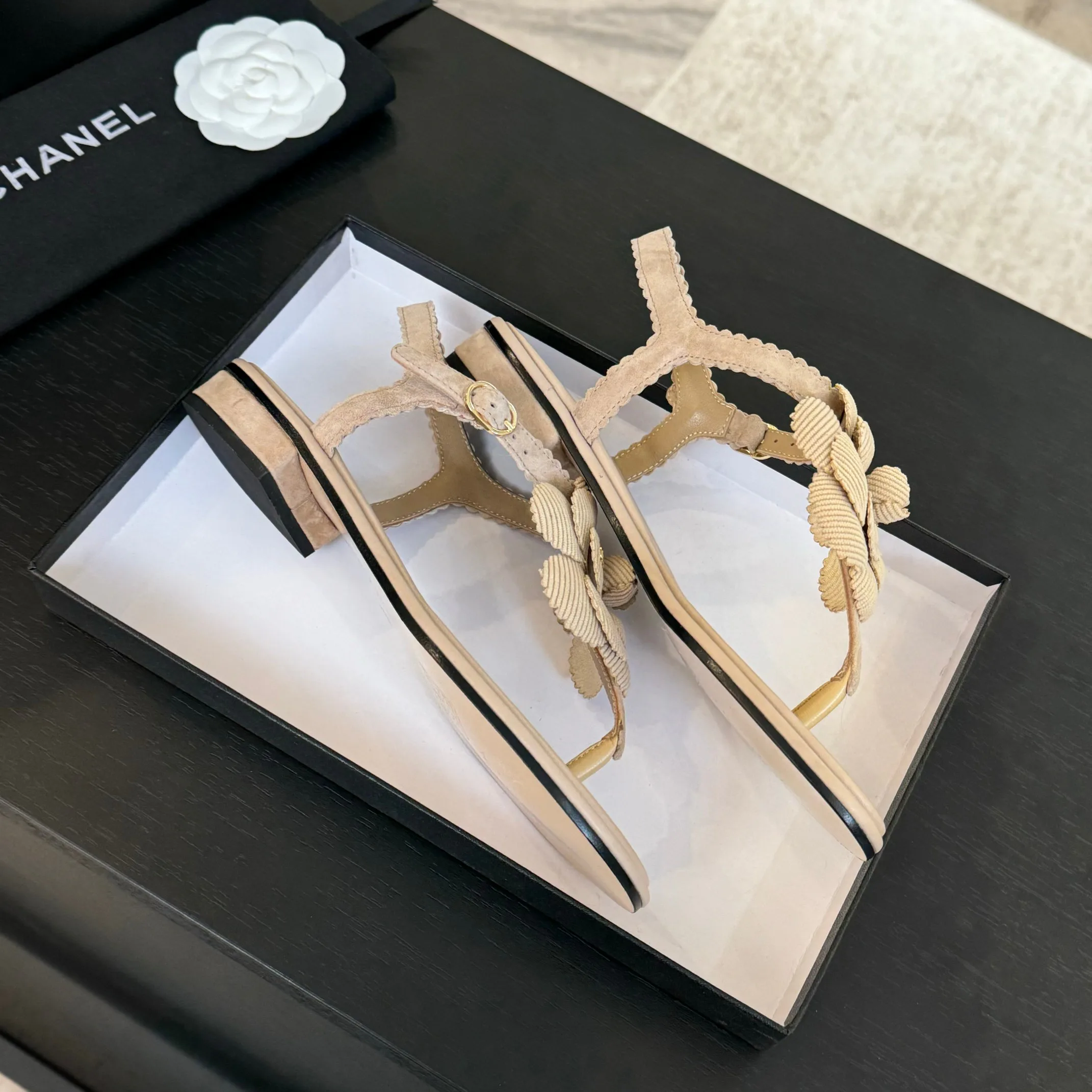 Дизайн модели основан на оригинальной форме цветка камелии, что делает их модными и привлекательными. Высота каблука составляет 2.5 см, что обеспечивает удобство в повседневной носке. Сандалии представлены в размерах 35 по 39, а также возможна индивидуальная подгонка под другие размеры.