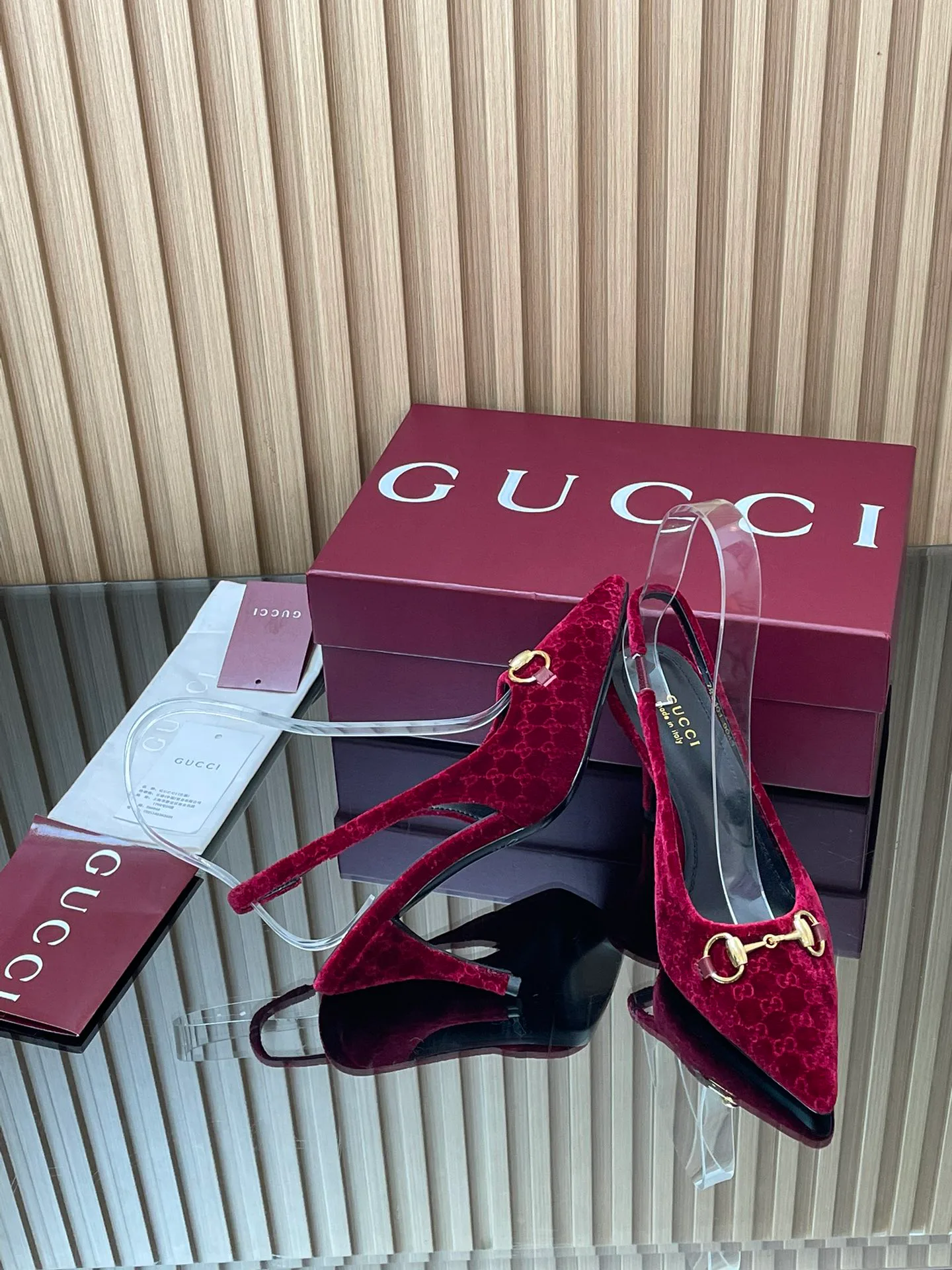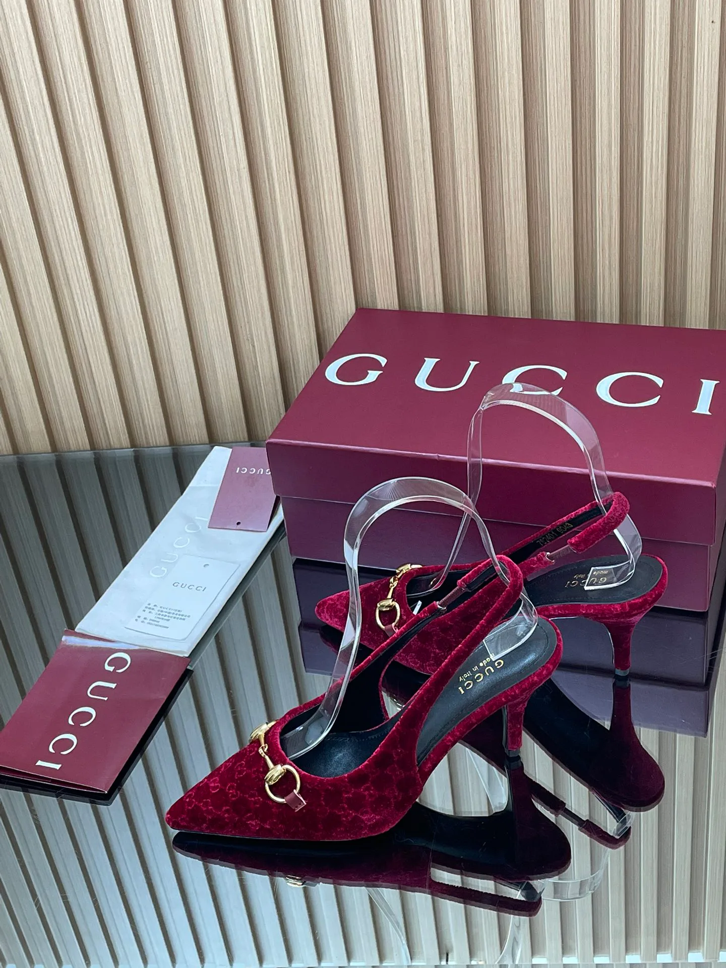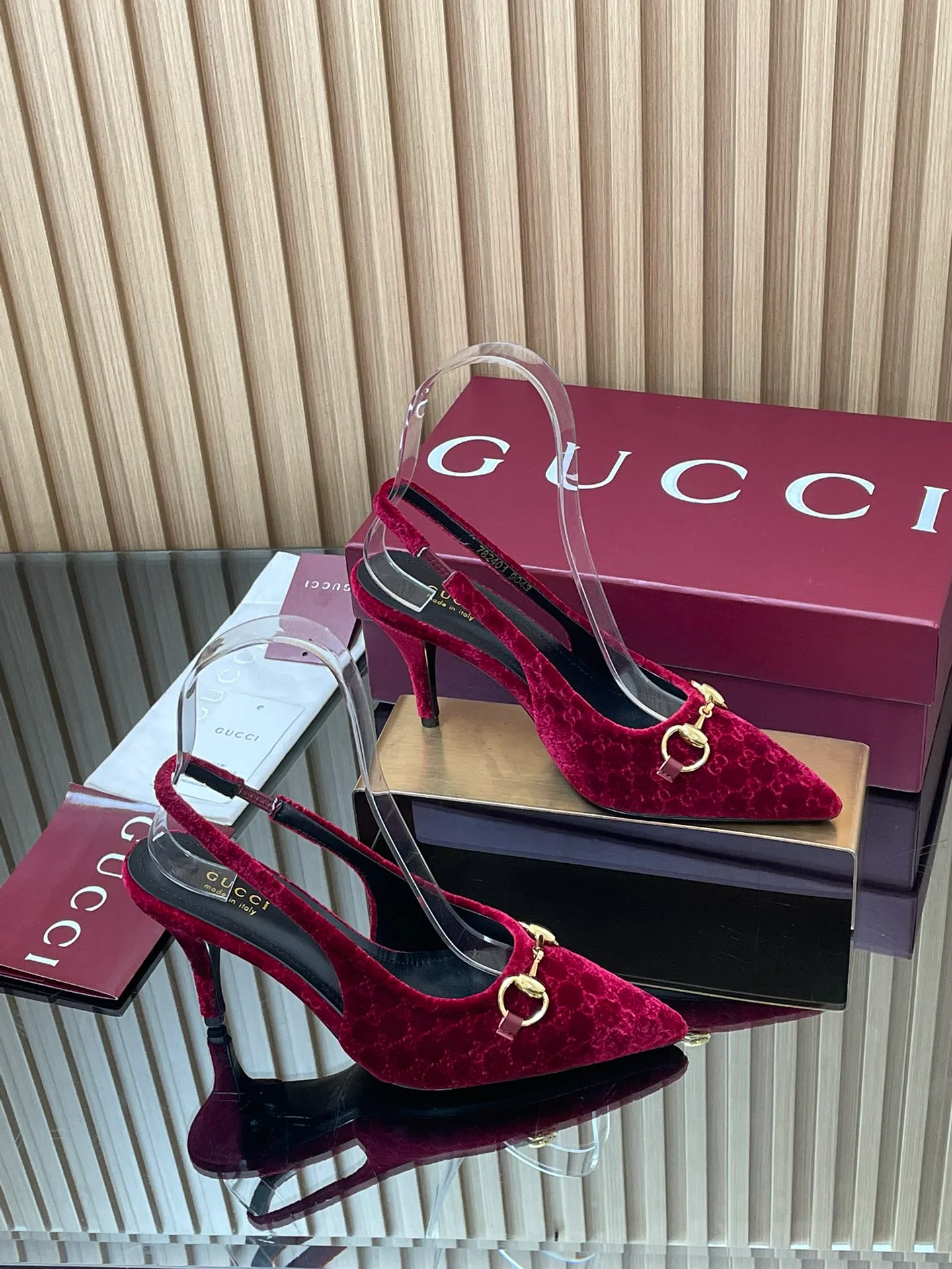 Элегантный дизайн с острым носом и узким каблуком высотой около 8,5 см. Широкая застёжка-ремешок со шнуровкой сзади позволяет регулировать посадку. Сандалии подходят для вечерних мероприятий и стильного повседневного образа в тёплые сезоны. Доступны размеры от 35 до 42, с индивидуальным пошивом для больших размеров. Комплект поставки включает оригинальную упаковку GUCCI.