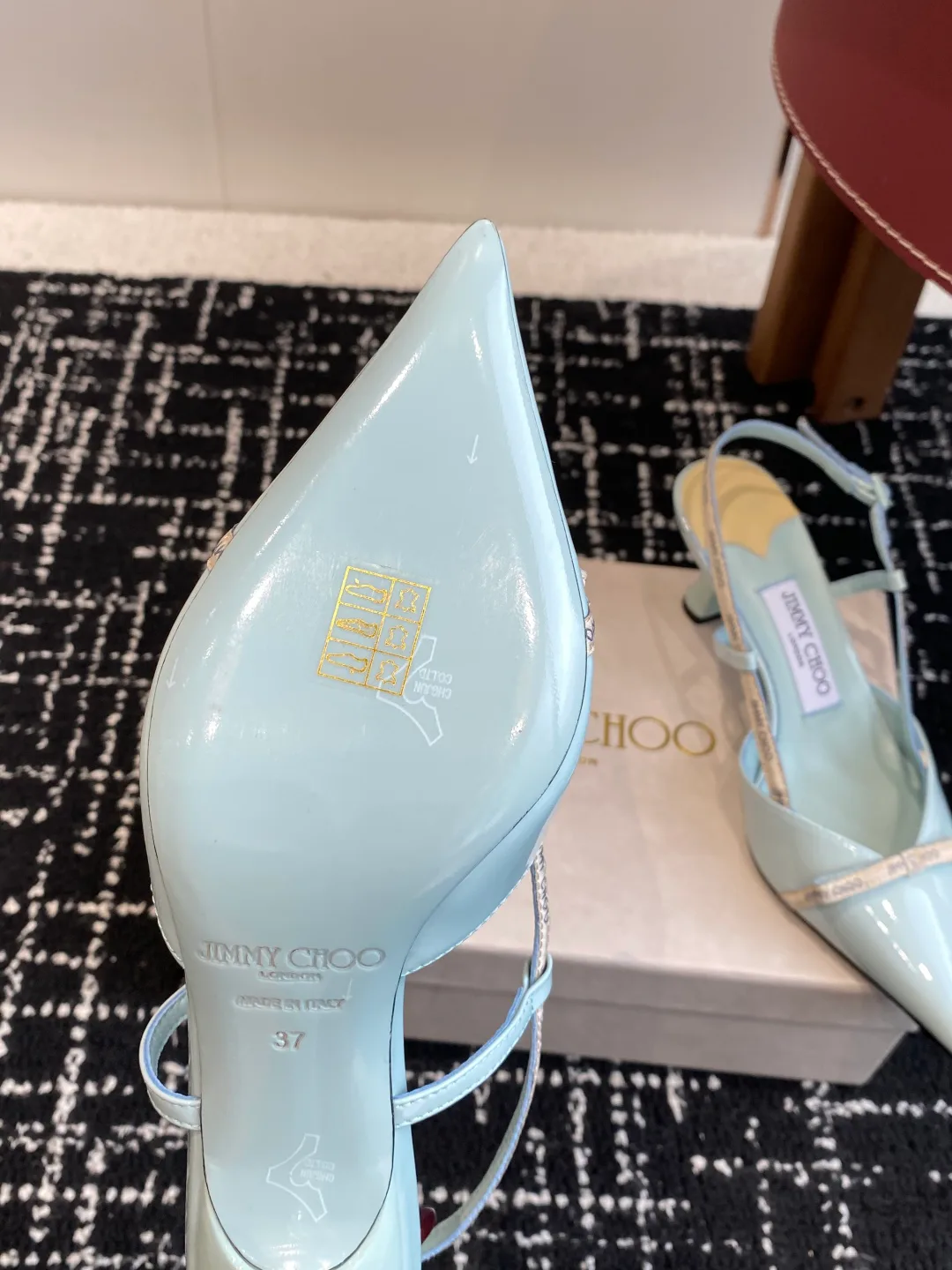 Конструкция подчёркнута изысканностью: украшение ноги напоминает браслет для лодыжки. Уникальные детали, такие как кристаллы, размещённые на задней части обуви, подчёркивают оригинальный силуэт, который дополняется острым носком и тонким каблуком высотой 6,5 см.