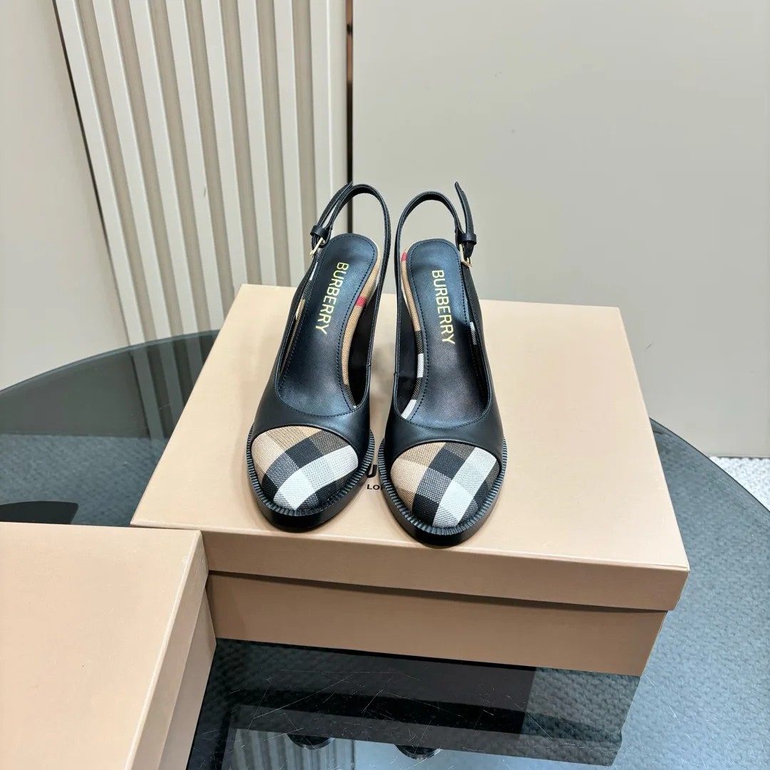 Туфли имеют классический круглый носок и устойчивый широкий каблук высотой 10 см, что обеспечивает стильный вид и комфорт при носке. Уникальный принт в виде фирменной клетчатой полосы BURBERRY придаёт этой модели характерный узнаваемый штрих.