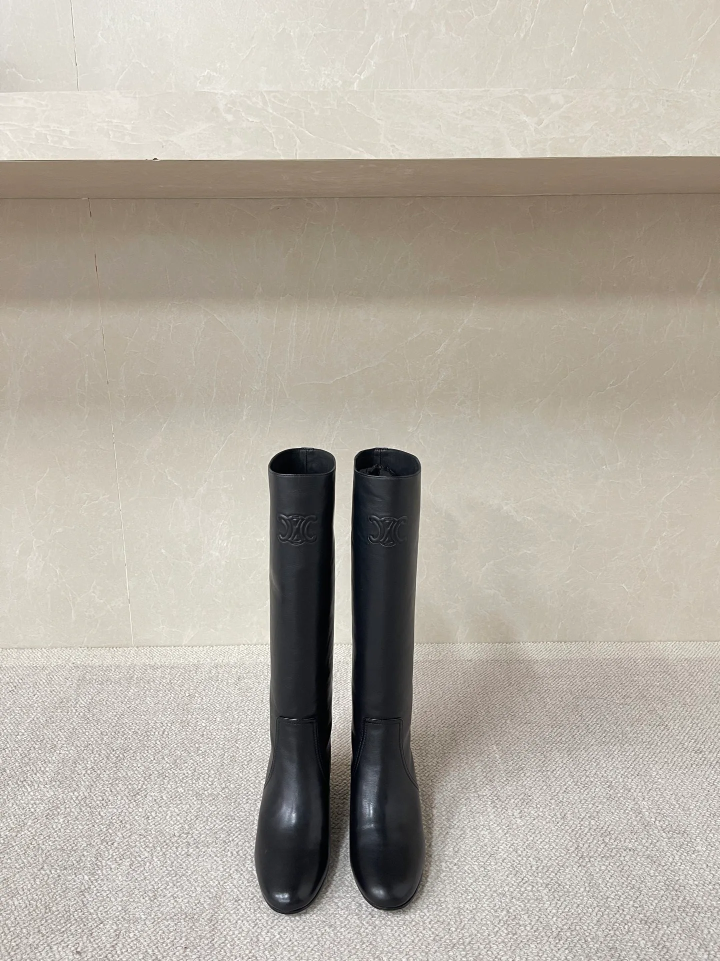 Высокие сапоги CELINE. Голенище расположено чуть ниже колена, красиво очерчивая силуэт и подчеркивая стройные ноги.