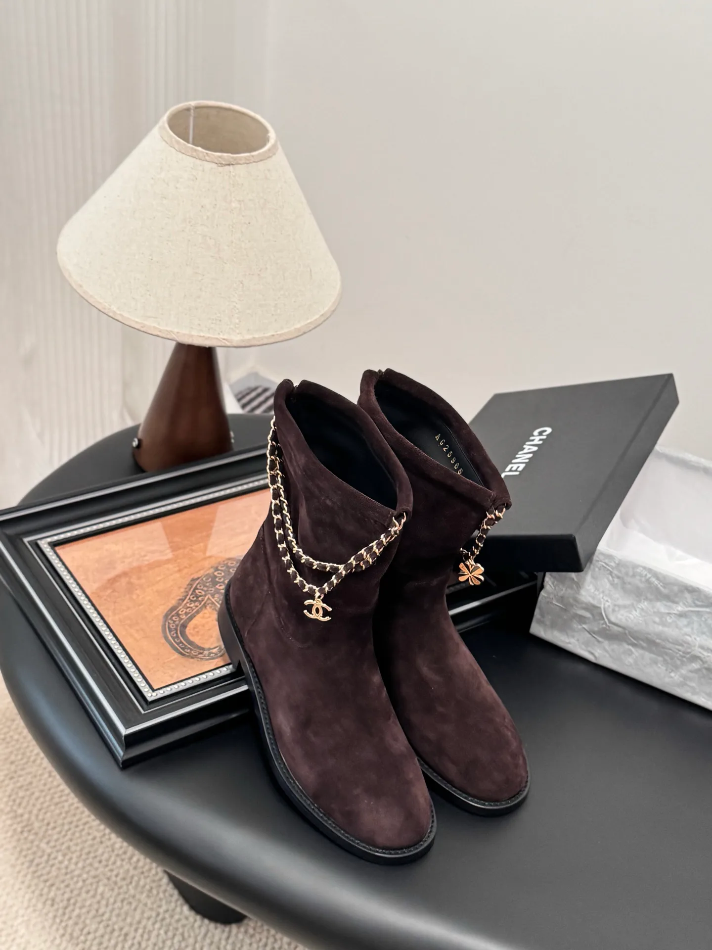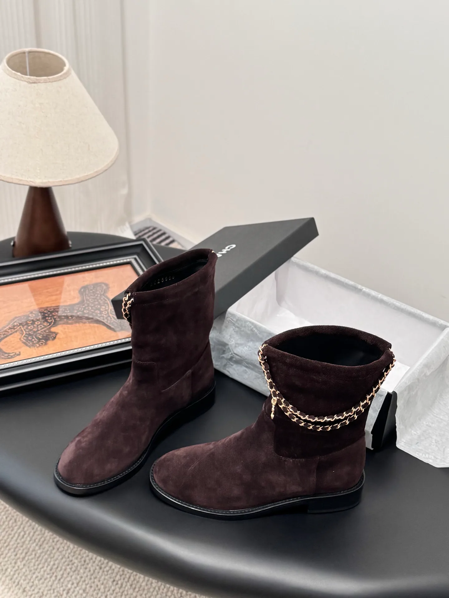 Дизайн и посадка: маленький круглый носок и плавная дуга силуэта. Никакой заостренности или резкой геометрии — образ мягкий и гармоничный. Внешний вид дополнен цепочной деталью, которая становится изюминкой образа. Силуэт утончённо женственный, смотрится ровно и стильно в сочетании с пальто, твидовыми костюмами и платьями.