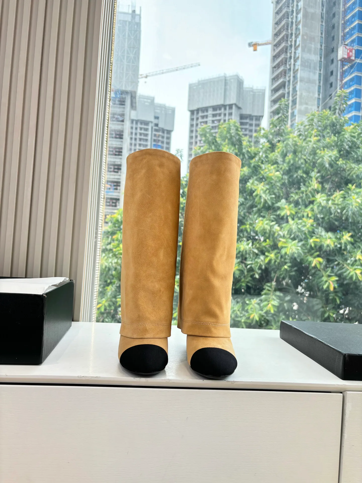 Внешний материал сапог выполнен из натуральной кожи ягненка, а подкладка — оригинальная. Размеры доступны от EU 35 до 39, для размеров 40–42 возможно индивидуальное изготовление, возврат не предусмотрен. Высота каблука составляет примерно 5,5 см, подошва изготовлена из натуральной кожи, произведенной в Италии.