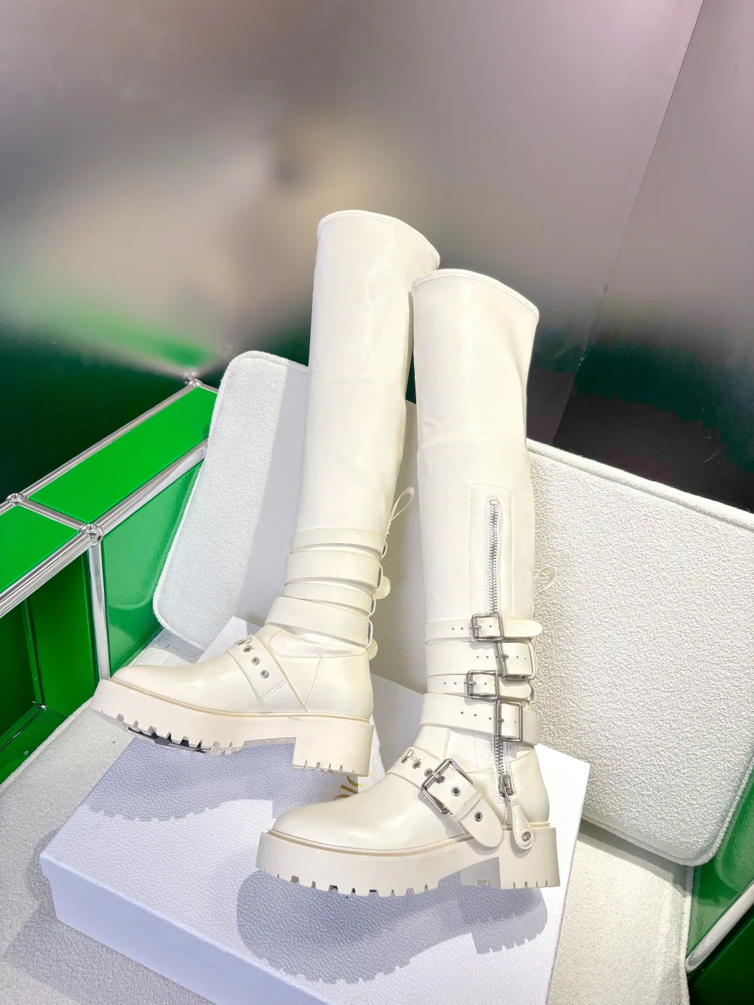 Сапоги женские CHRISTIAN DIOR — осенне-зимние сапоги с многоуровневыми кожаными ремнями и пряжками, подчёркивающими модный стиль.