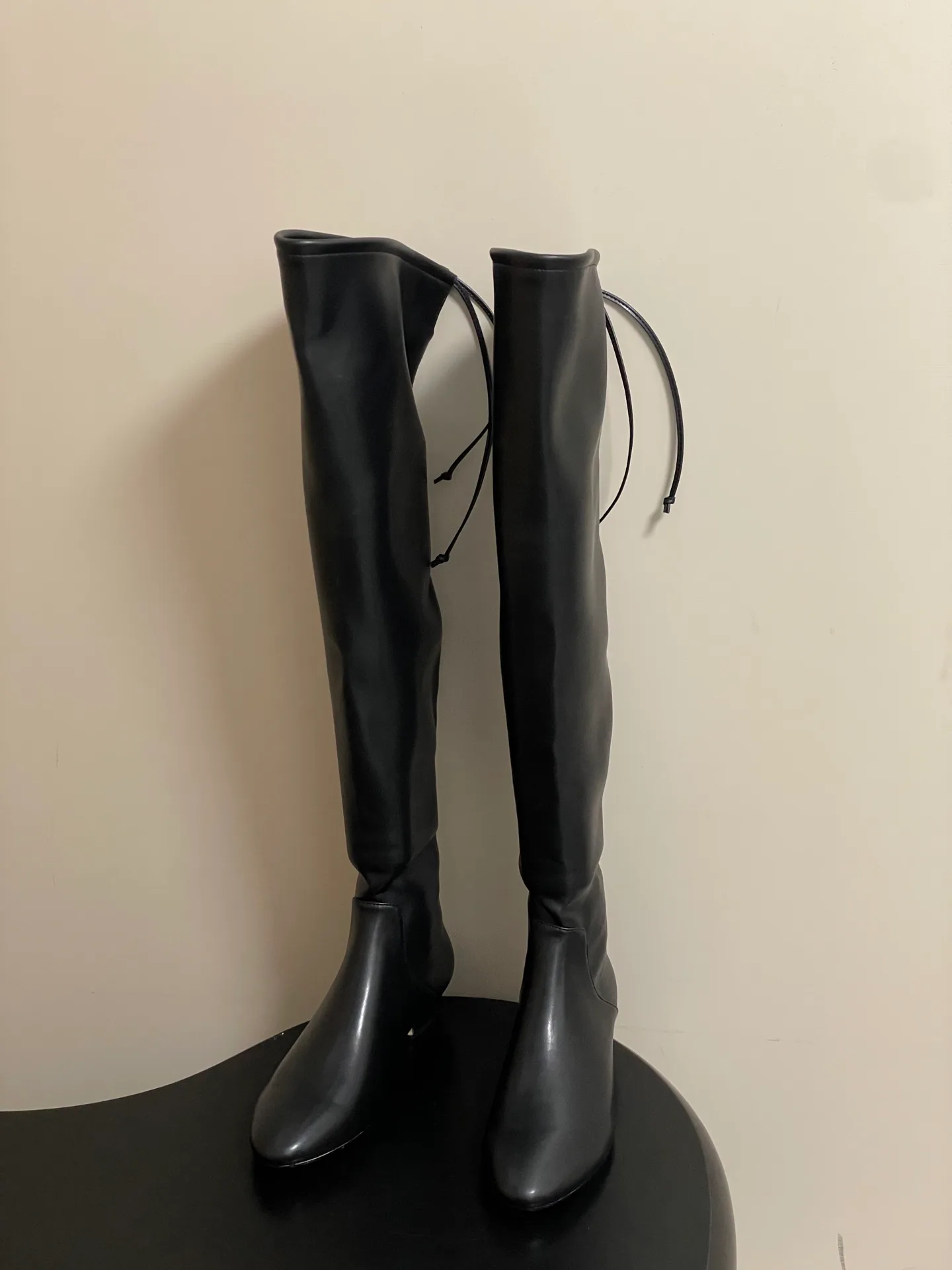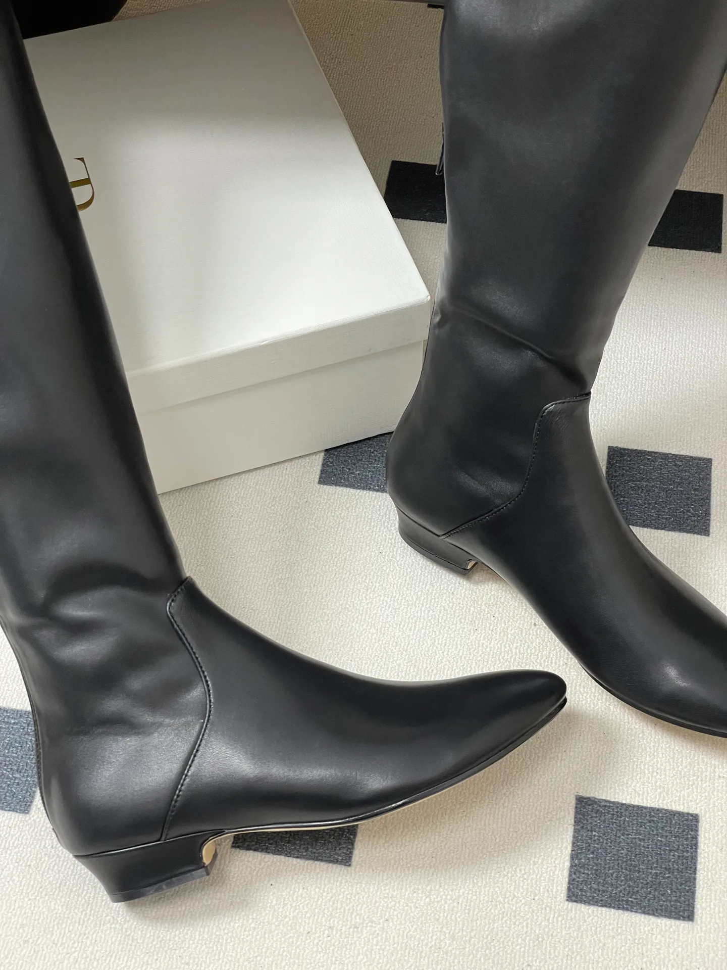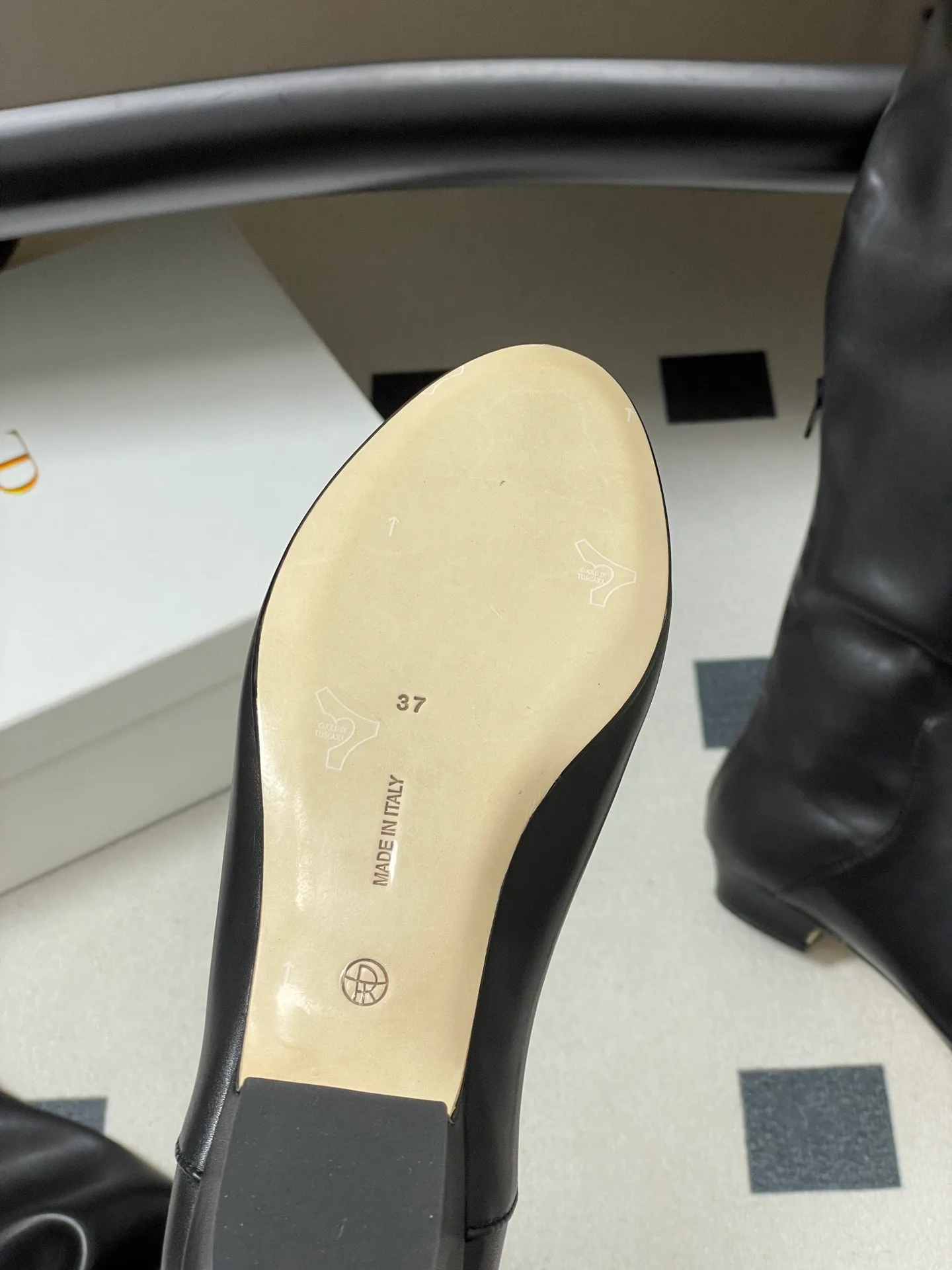 Средне-высокая модель закрывает часть голени и визуально вытягивает силуэт ноги. Небольшой каблук, высотой около 3 см, обеспечивает комфорт при носке. Ботфорты доступны в размерах 35–39, а также возможно индивидуальное изготовление для размеров 40–41.