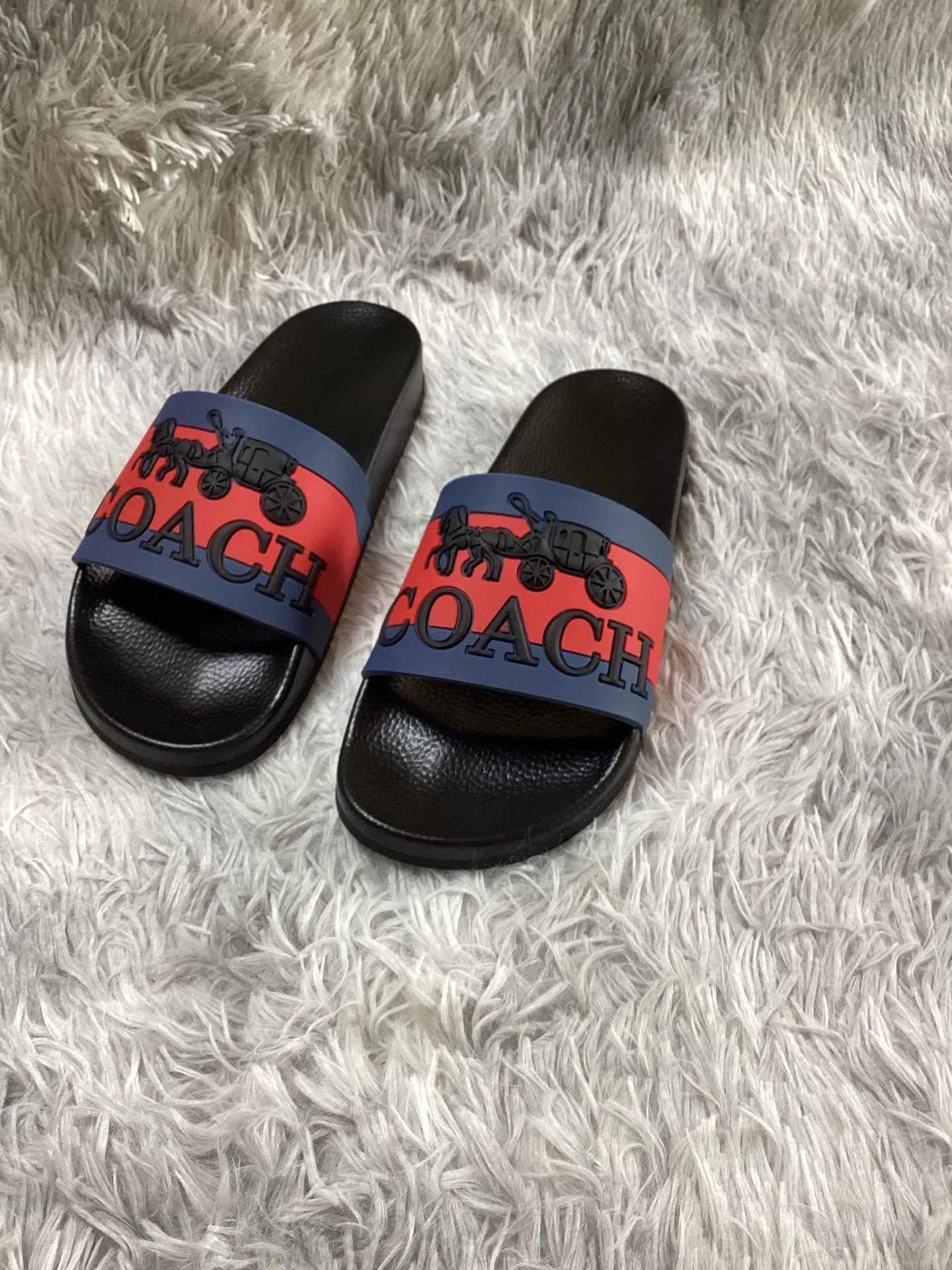 Шлепанцы женские COACH — классический дизайн с логотипом конной повозки, доступные в четырёх цветах. Верх выполнен из качественных материалов, подошва обеспечивает противоскользящее сцепление и износостойкость. Размеры варьируются от 38 до 45, охватывая широкий диапазон. На верхней части размещён фирменный знак в виде конной повозки, подчёркивающий стиль изделия.