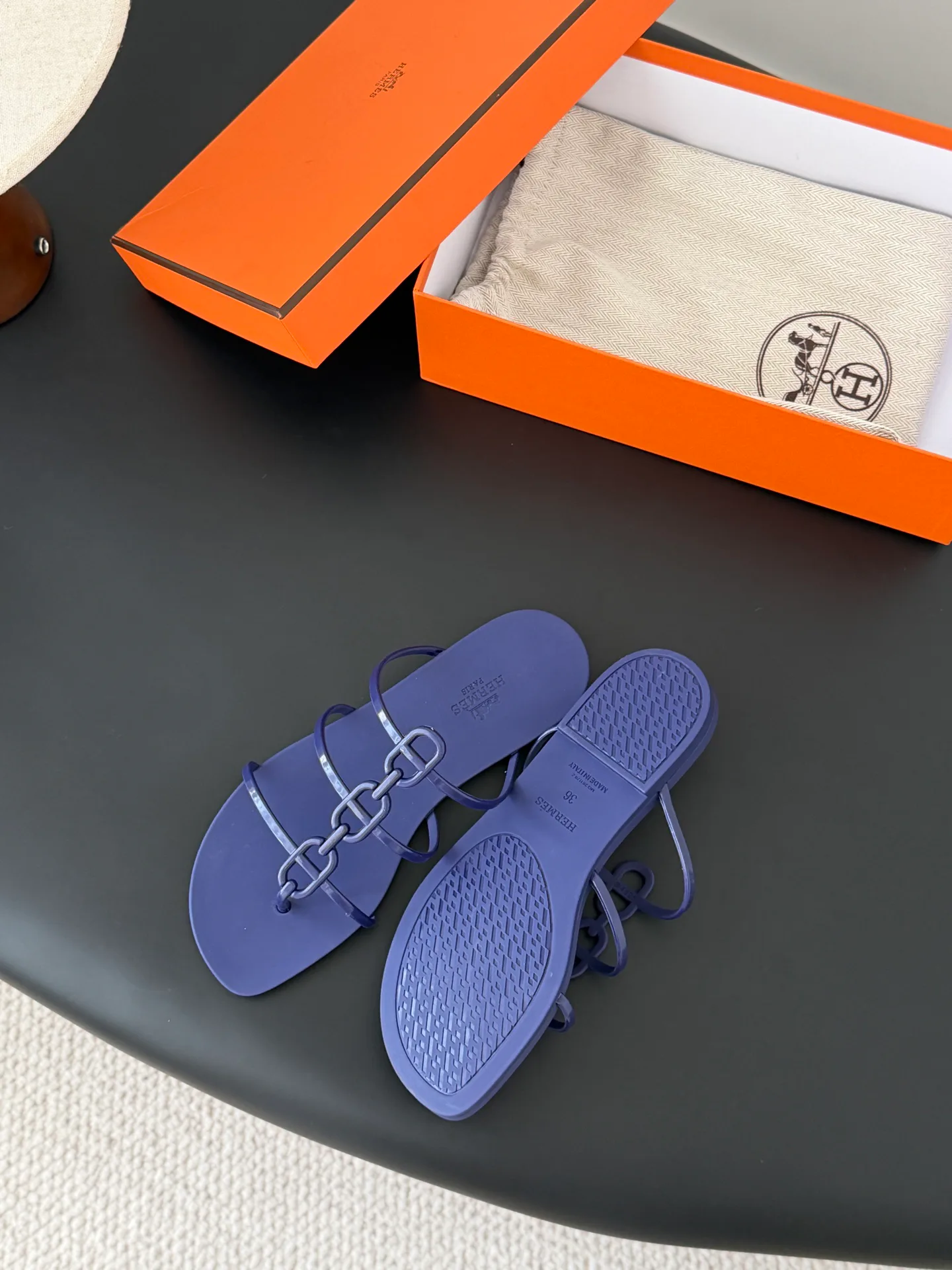 Шлепанцы женские HERMES — модель из коллекции 2026 года выполнена в технике «джэлли» из ПВХ. Подошва комбинированная, состоит из двух слоев. Представлены в размерном ряду с 35 по 41.