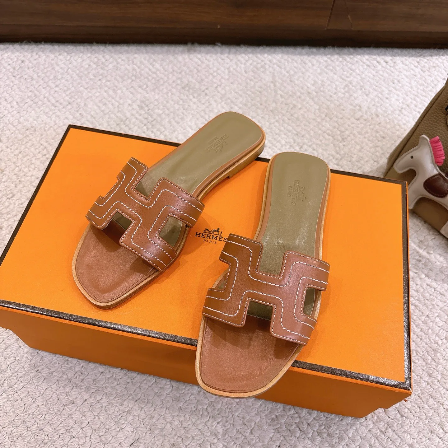 Шлепанцы женские HERMES — серия Oran, верх выполнен из оригинальной натуральной кожи по форме 1:1 и минимально обработан для комфорта. Поверхность украшена вышивкой, дизайн сохраняет лаконичность и стиль. Подошва изготовлена из натуральной кожи. К каждой паре идут два шелковых шарфа из серии H. Размеры: 34–42; для кастомных размеров 34, 40, 41, 42, 43 возврат и обмен не предусмотрены.