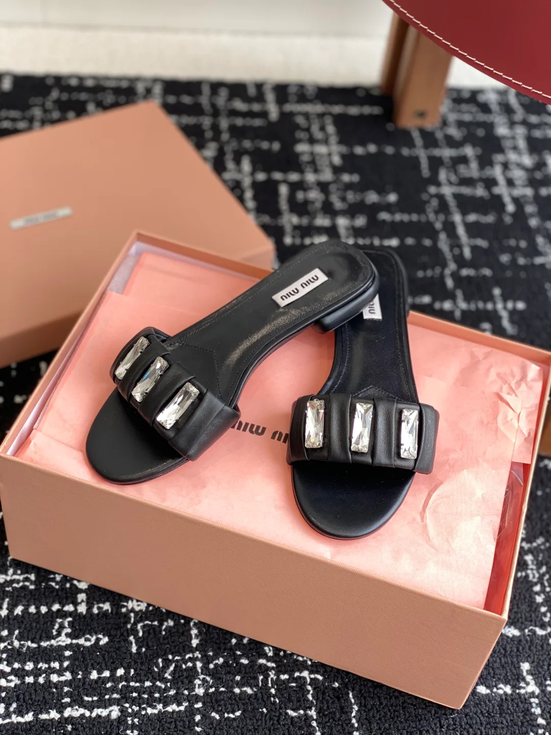 Шлепанцы женские MIU MIU. Из коллекции miu'miu это классическая комфортная пара с золотистым верхом из кожи ягненка и плоской подошвой, повторяющей оригинальный дизайн. Подошва изготовлена из натуральной кожи Италии, что обеспечивает долговечность и комфорт. Размеры: 35–40; 40 размер — заказной и не подлежит возврату. Эта модель подходит для весны и лета, подчёркивая лаконичный стиль.