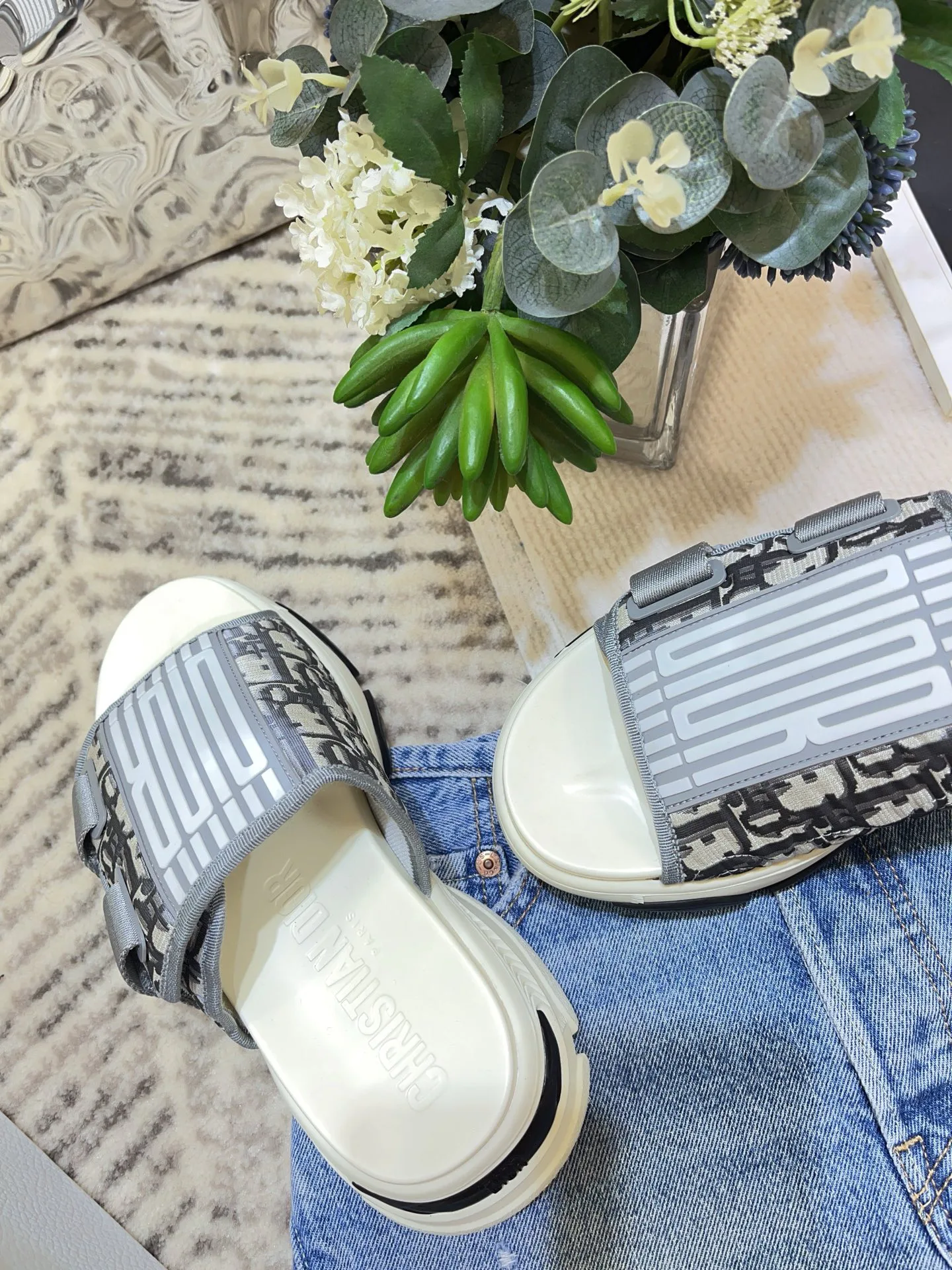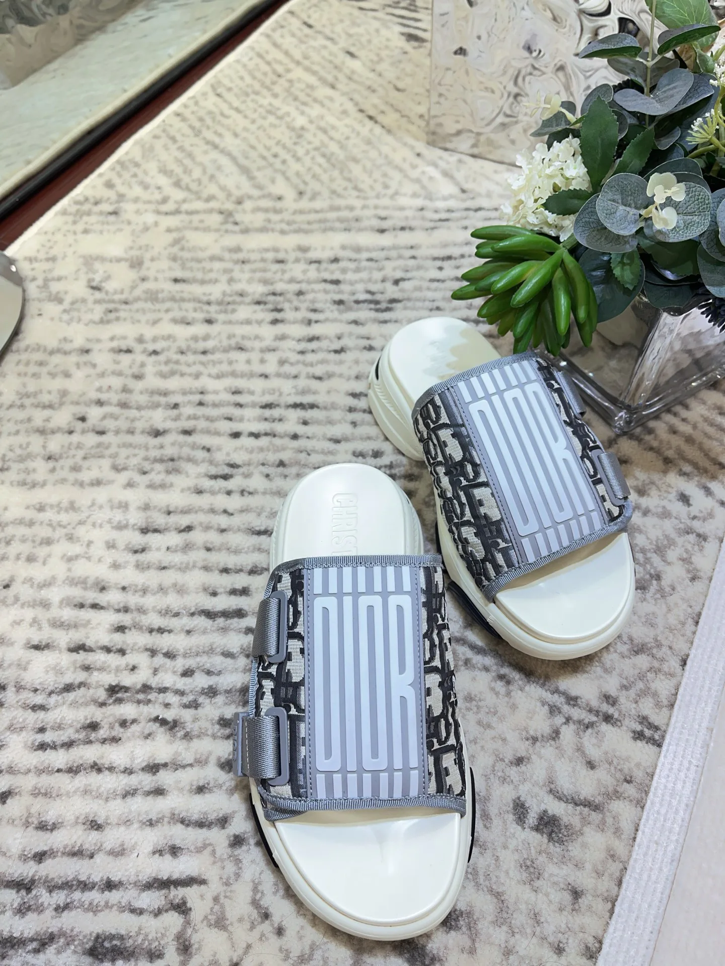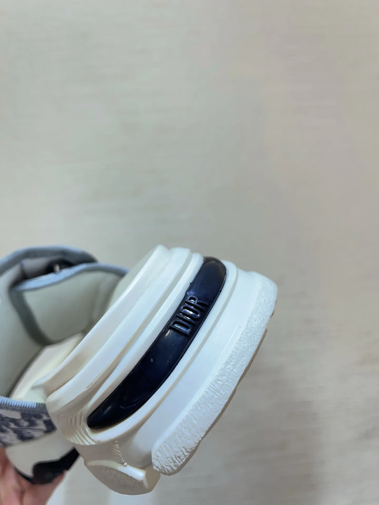 Толстая двуцветная резиновая подошва дополнена символом удачи Christian Dior, подчеркивающим премиальный характер обуви. Две регулируемые липучки с фирменной маркировкой обеспечивают удобную посадку. Подкладка также выполнена из технологичной ткани.