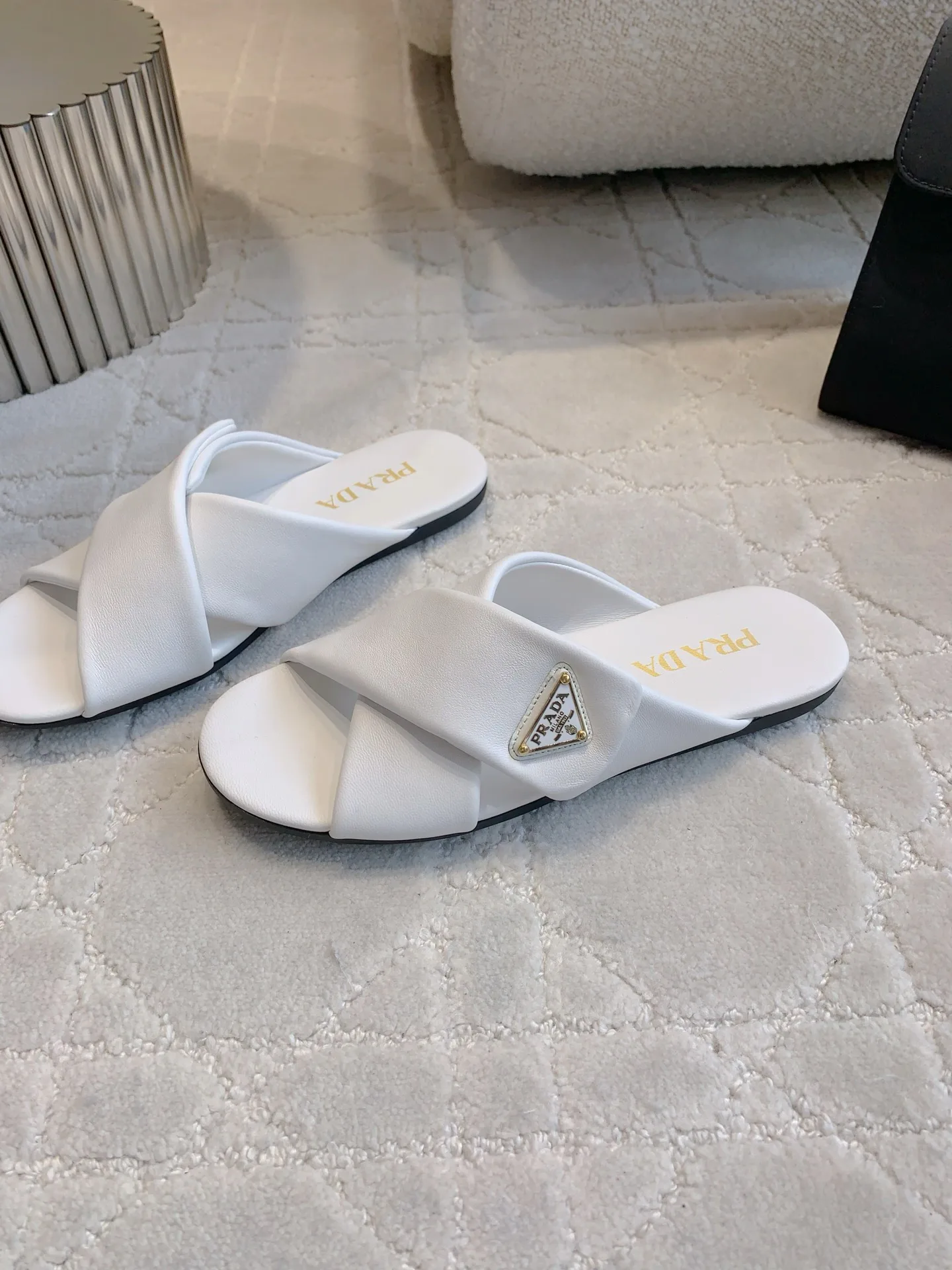 Модель доступна в размерах 35–39; возможно изготовление на заказ в размерах 40 и 41. Наличие треугольного логотипа добавляет стильный акцент, делая обувь практичной и изысканной.