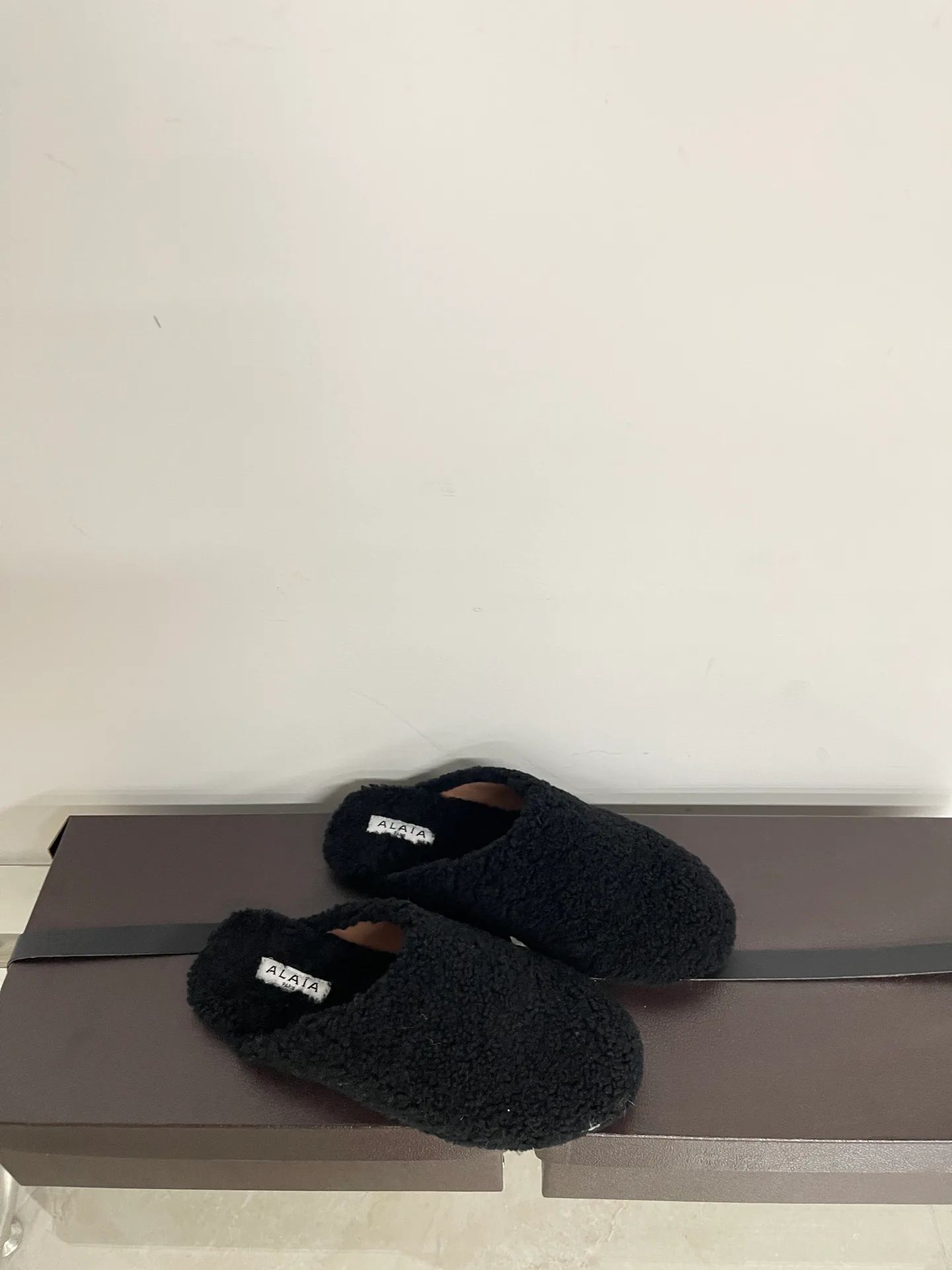 Тапочки женские ALAIA — балетные тапочки с верхом из мягкой замшевоподобной ткани и теплой овчинной подкладкой. Верх имеет замшево-вельюровую фактуру, внутренняя подкладка из овчины обеспечивает мягкость и тепло. Эта пара предназначена для ношения в холодный сезон и дарит комфорт при каждом шаге. Размеры: 35–42. Материалы и отделка подчеркивают уютный зимний стиль.