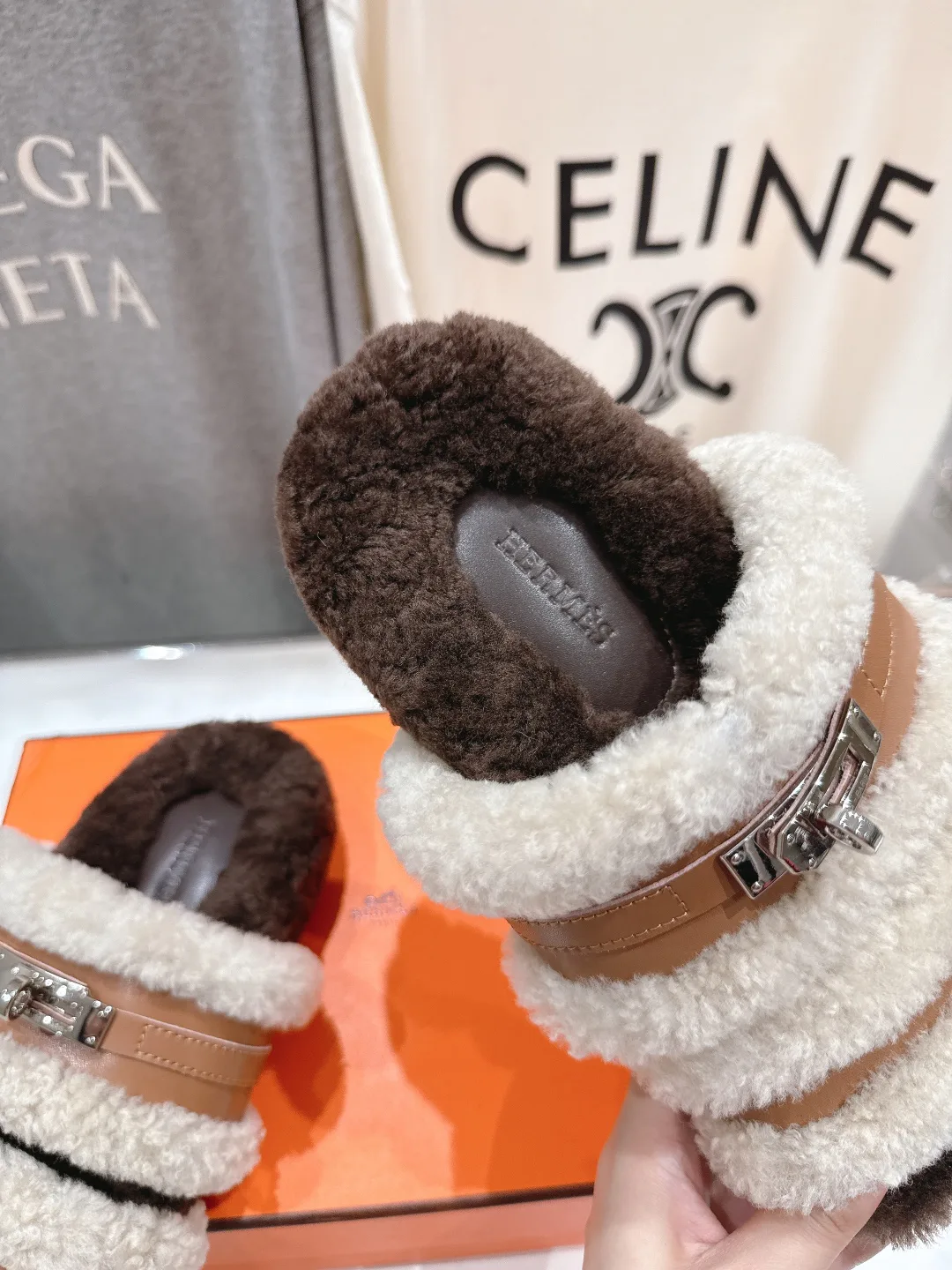 Доступные размеры варьируются от 35 до 41. Для размеров 40 и 41 возможна индивидуальная установка по заказу, такие заказы не подлежат возврату. Мягкий и теплый мех создает уютный внешний вид, идеально подходящий для домашнего использования.