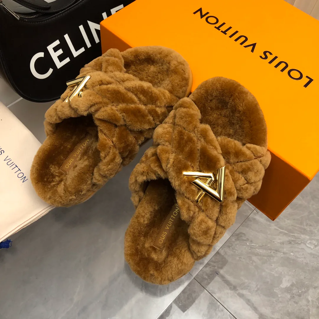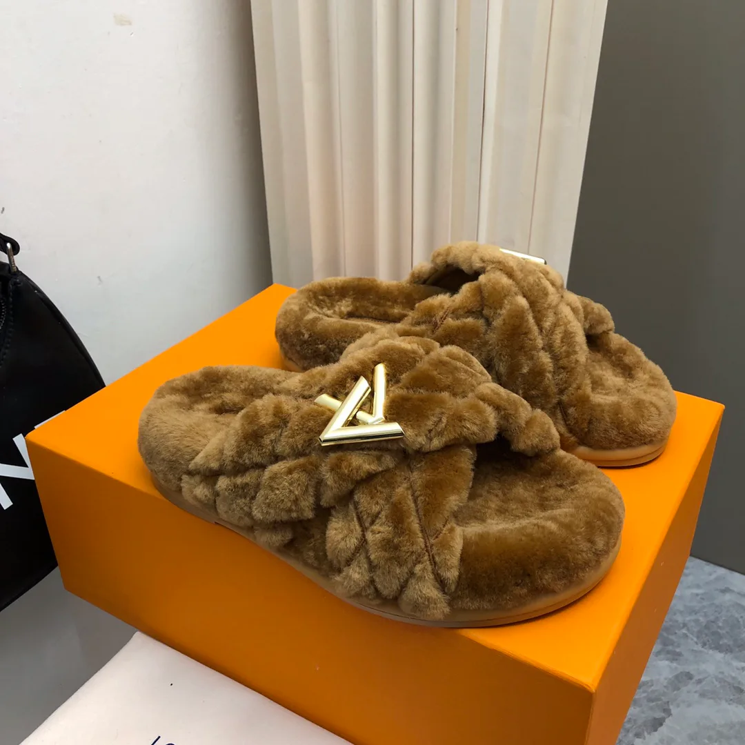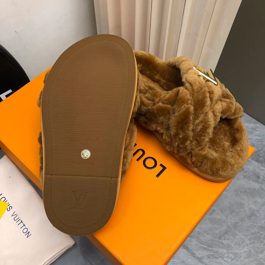Размеры доступны в диапазоне 35–41 EU. Модель подходит для повседневной носки как дома, так и на прогулке в прохладную погоду. Слипы с меховым верхом создают роскошное впечатление и подчеркивают премиальный уровень изделия. Отлично сочетаются с джинсами и зимними пальто, позволяя создавать стильные образы. Производство соответствует оригинальному дизайну и стилю LOUIS VUITTON.