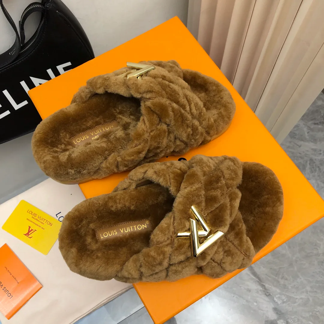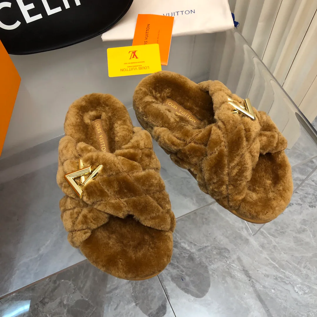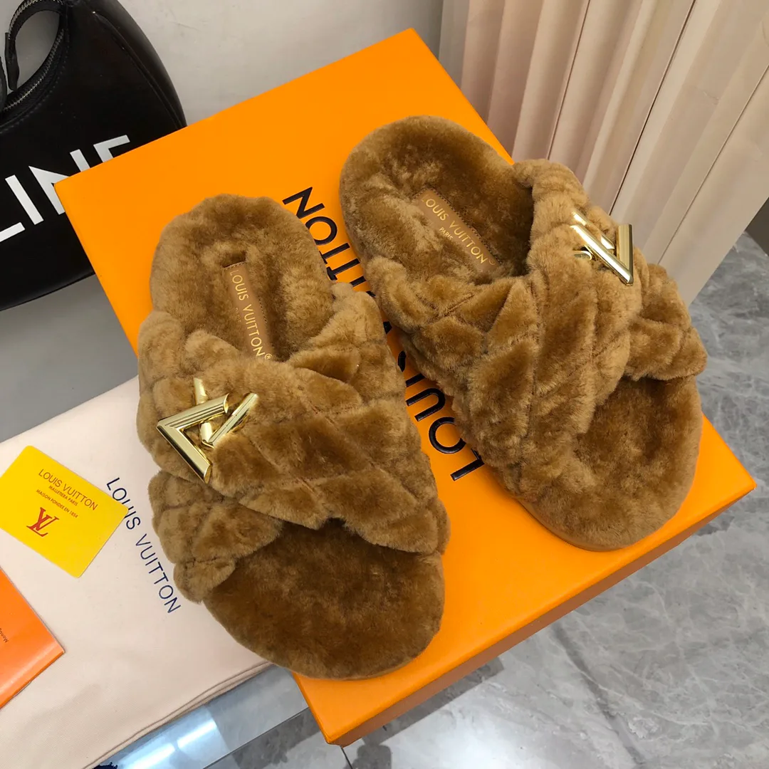 Размеры доступны в диапазоне 35–41 EU. Модель подходит для повседневной носки как дома, так и на прогулке в прохладную погоду. Слипы с меховым верхом создают роскошное впечатление и подчеркивают премиальный уровень изделия. Отлично сочетаются с джинсами и зимними пальто, позволяя создавать стильные образы. Производство соответствует оригинальному дизайну и стилю LOUIS VUITTON.