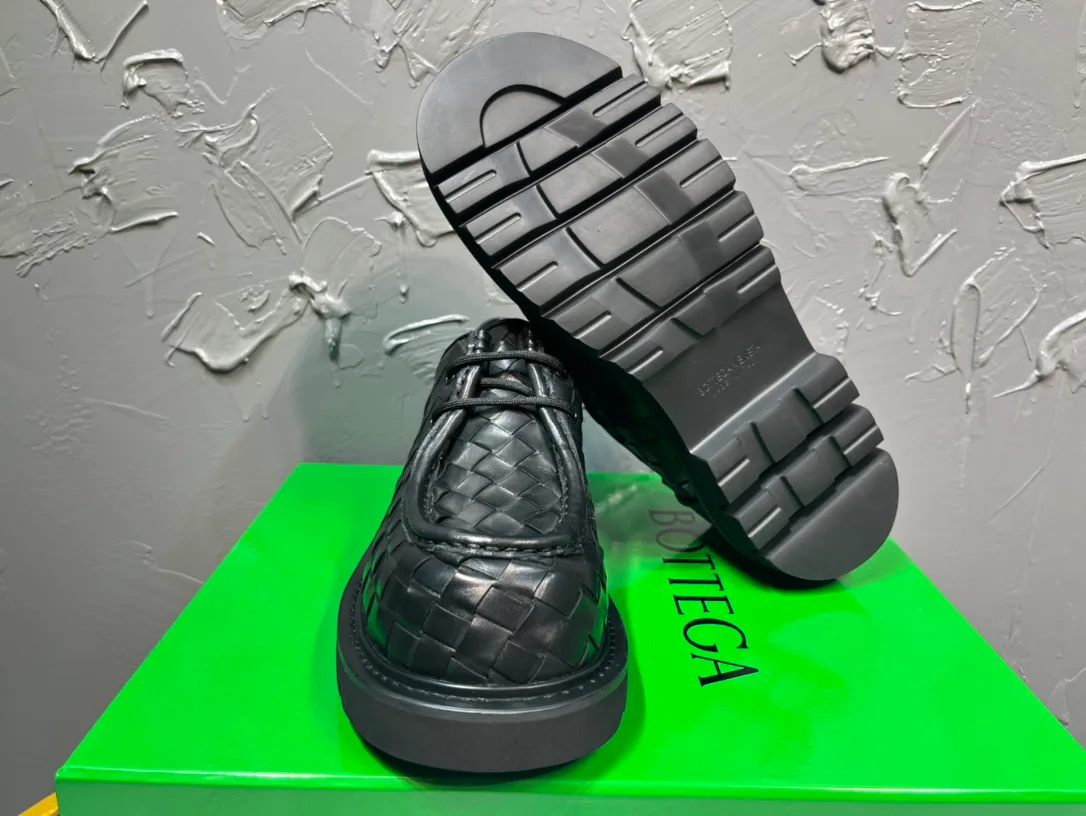 - Верх полностью вручную сплетён из телячьей кожи в узнаваемом узоре intrecciato — классика BV, подчёркивающая статус и стиль.