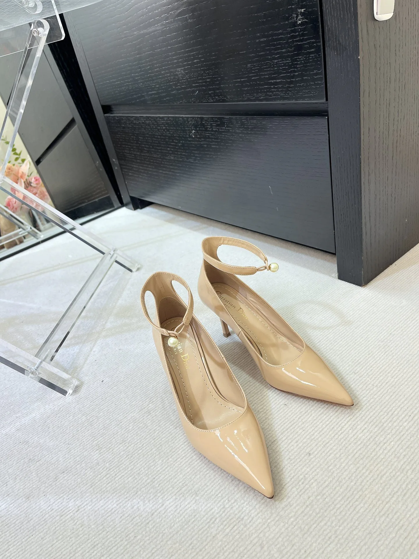 Туфли выполнены из качественной лаковой кожи, подчеркивающей их утонченный вид. Особенностью дизайна является изящная шнуровка вокруг лодыжки, добавляющая нотку сексуальности и женственности. На шнуровке расположена белая акриловая бусина с логотипом CD, отсылающая к культовым серьгам Dior Tribales и придающая обуви эксклюзивный шарм.