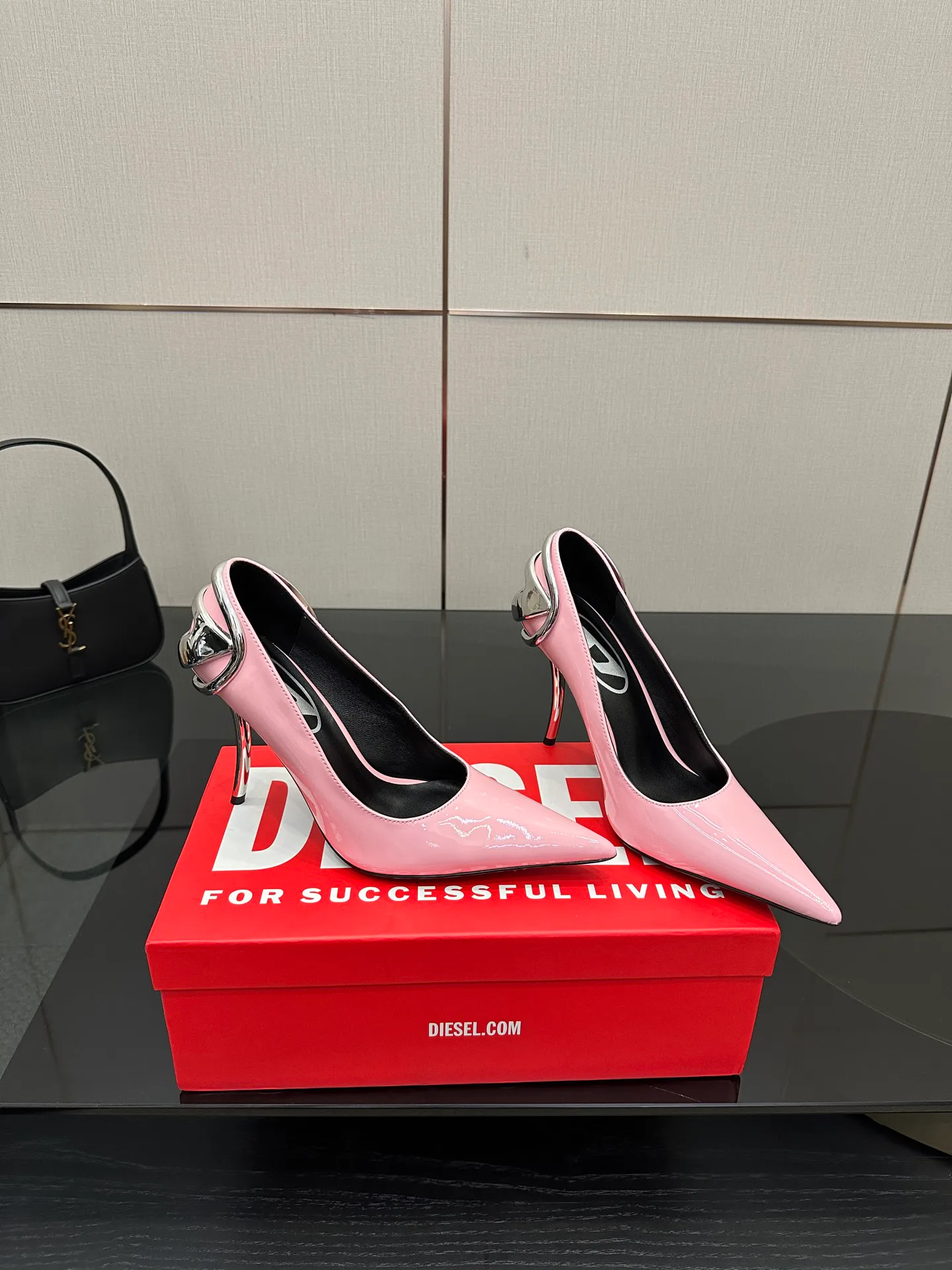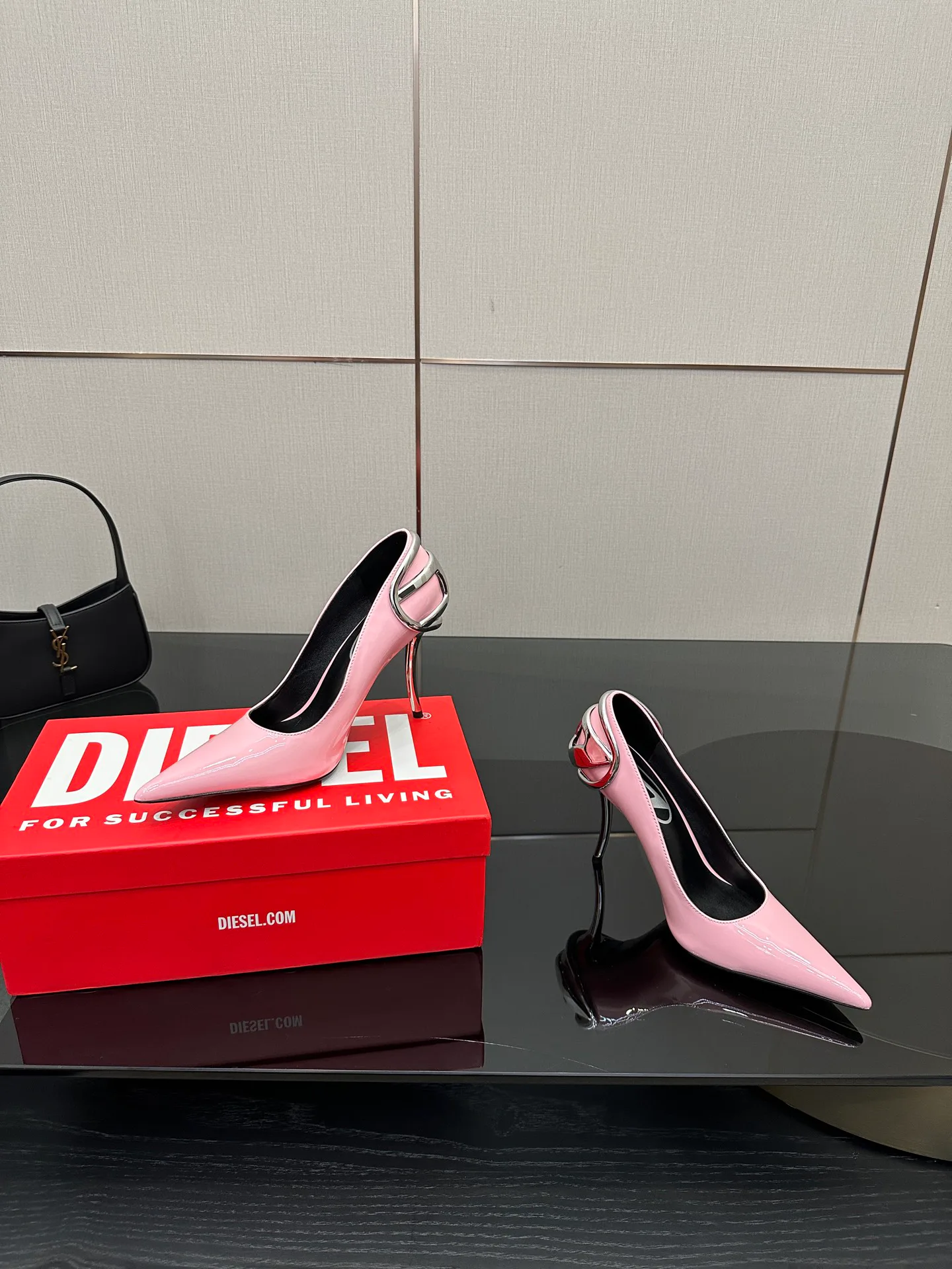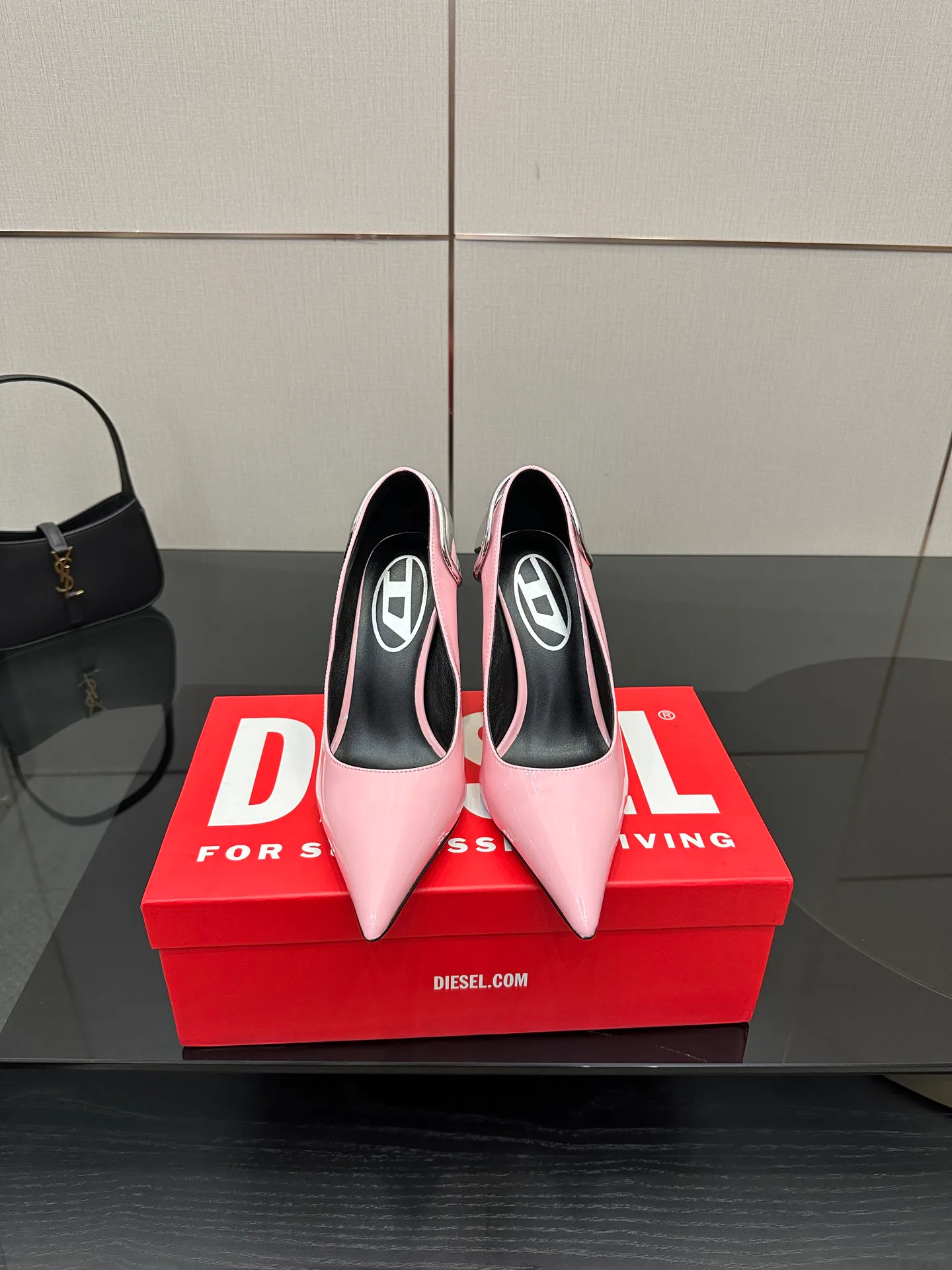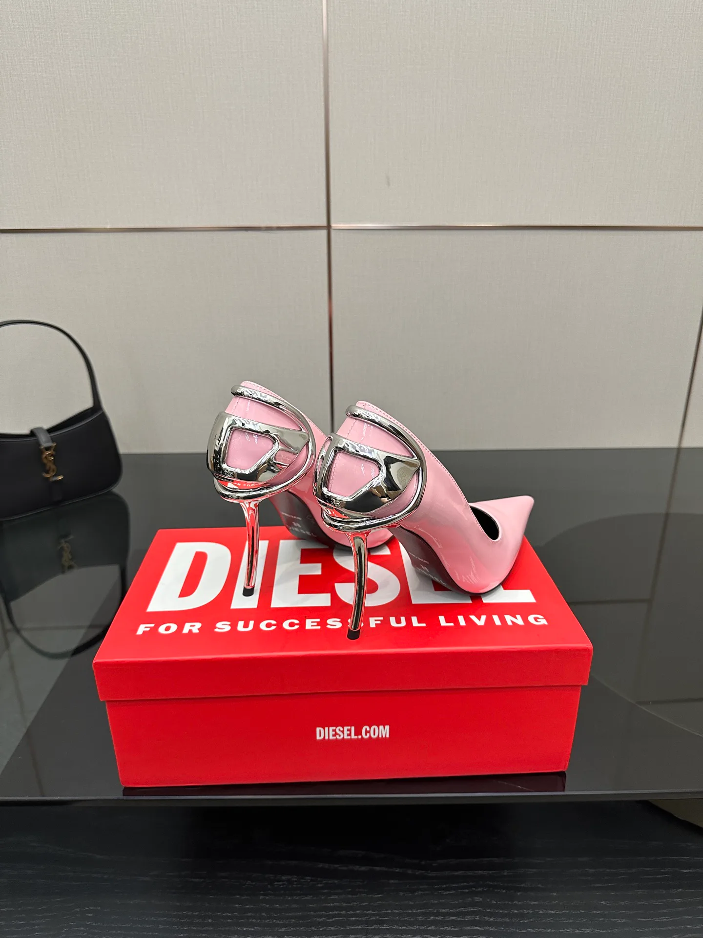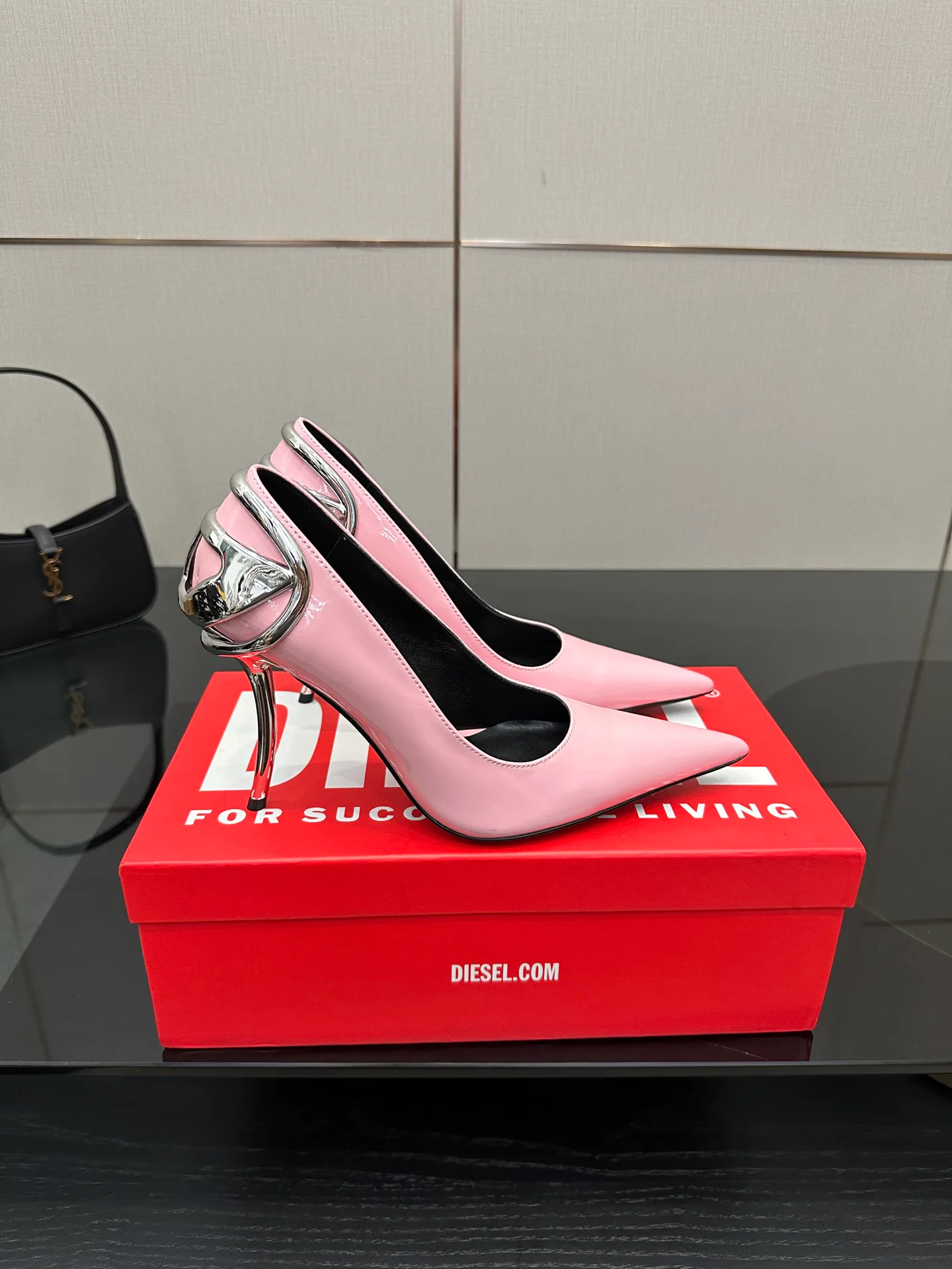Подошва изготовлена по эксклюзивному образцу DIESEL, что добавляет уникальности. Высота каблука составляет 10,5 см, что создаёт стойкий и эффектный подъём. Доступны несколько цветовых вариантов, возможна индивидуальная настройка под заказ. Туфли подходят для вечерних и коктейльных образов, демонстрируя фирменный стиль и качество DIESEL.