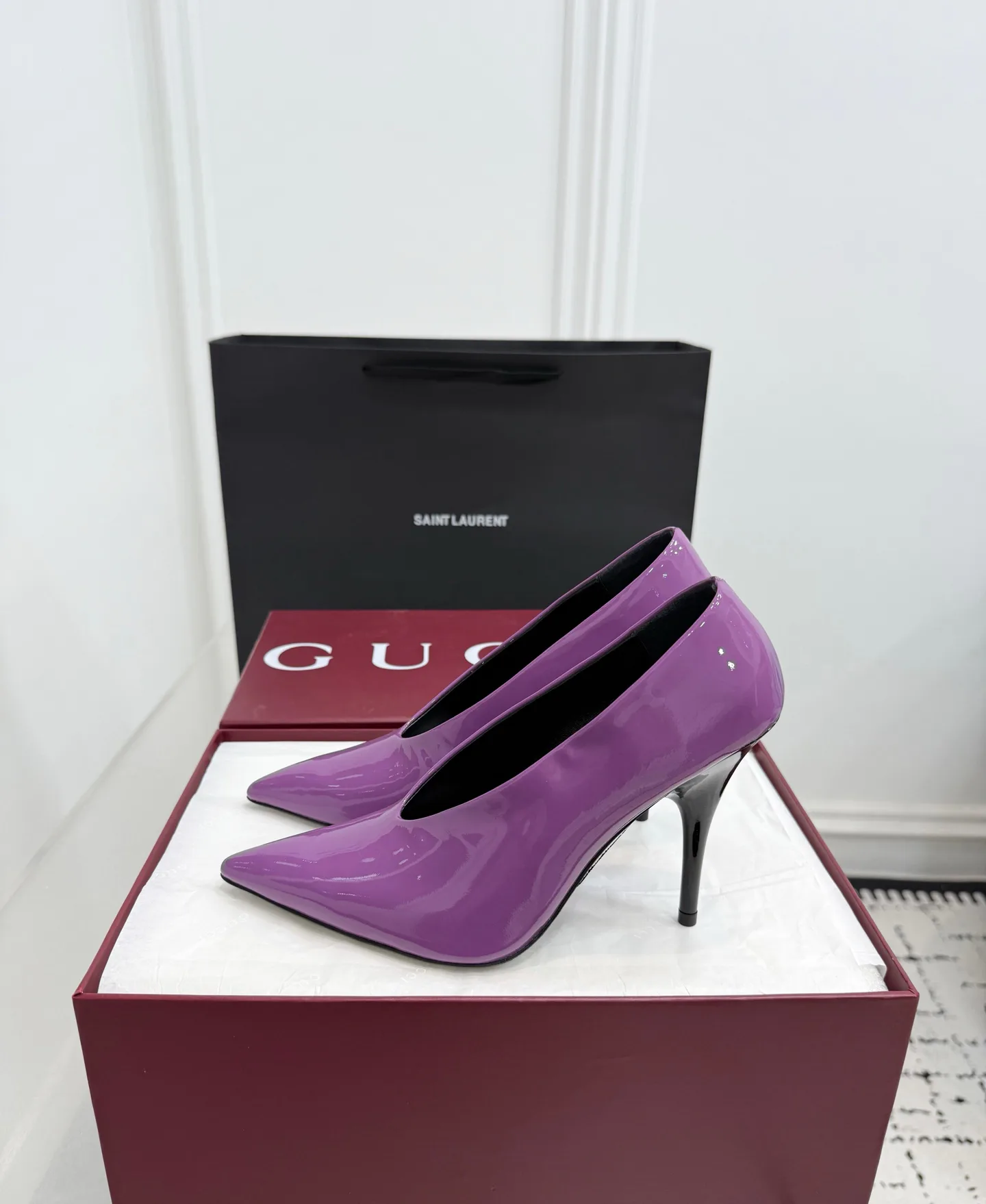 Данная модель включает оригинальный V-образный вырез, который добавляет женственности и оригинальности, а сочетание лакированной поверхности с текстурой натуральной кожи подчеркивает современный стиль. Размерный ряд представлен размерами с 35 по 42, при этом для моделей 40, 41 и 42 предусмотрено индивидуальное изготовление.