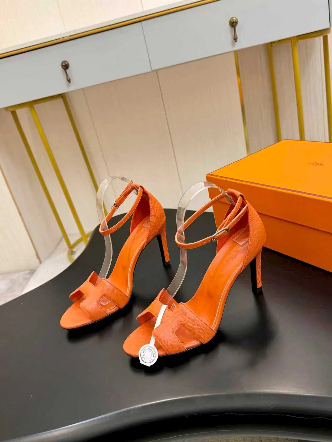 Туфли женские HERMES — модель Eclair из новой коллекции представлена в актуальных сезонных расцветках. Колодка сохраняет чёткий силуэт, а конструкция с высотой каблука от 7 до 10,5 см визуально удлиняет линию ноги. Модель выполнена из мягкой натуральной кожи, что обеспечивает комфорт и воздухопроницаемость. Это стильный вариант для тёплого времени года, сочетающий эстетику и удобство.
