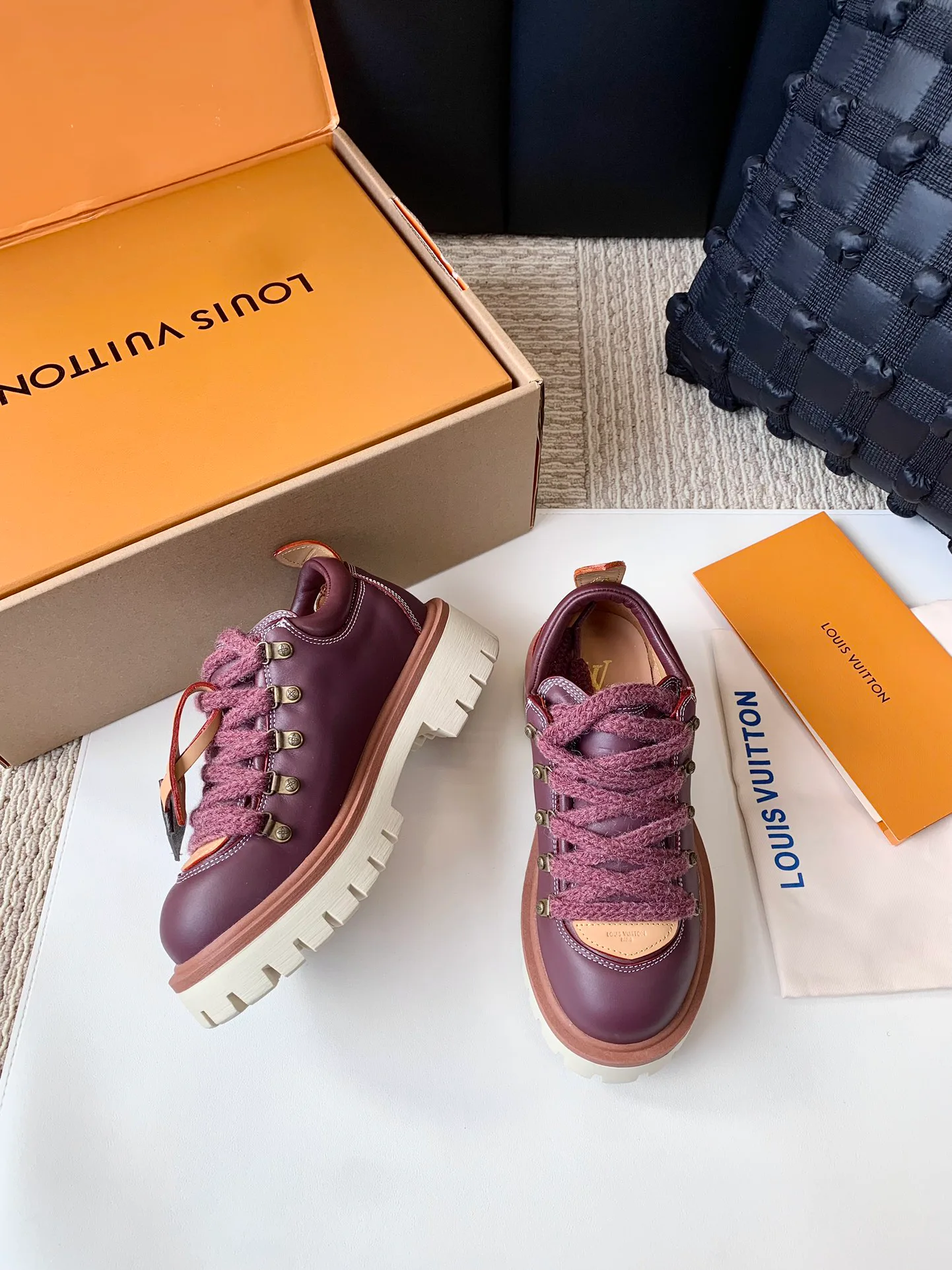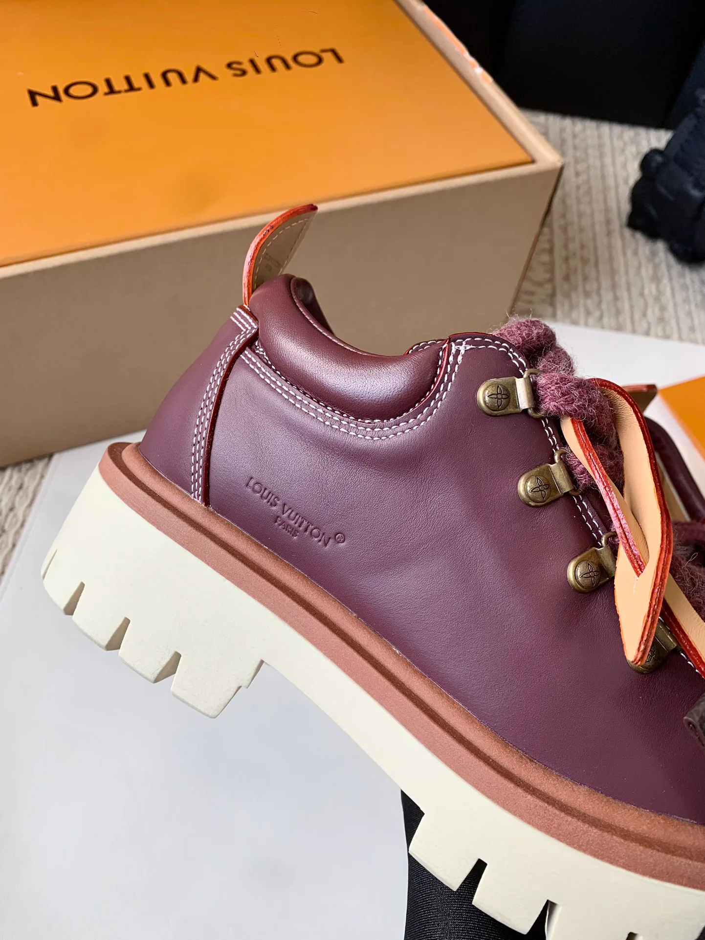 Внутренняя подкладка из мягкой телячьей кожи обеспечивает комфорт при длительном ношении. TPU-подошва гарантирует устойчивость на скользких поверхностях и хорошее сцепление на пересечённой местности. Дерби-стиль с фиксированной полнотой посадки делает эти кроссовки подходящими для повседневного городского использования и лёгких походов. Женский размер 40 и мужской 46 доступны по индивидуальному заказу без возможности возврата.