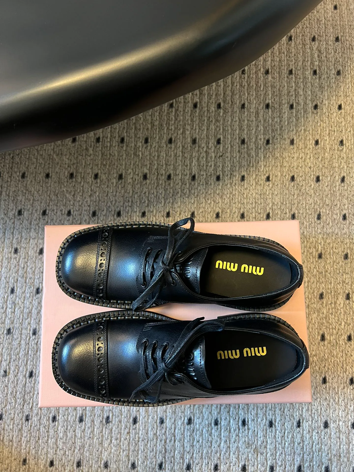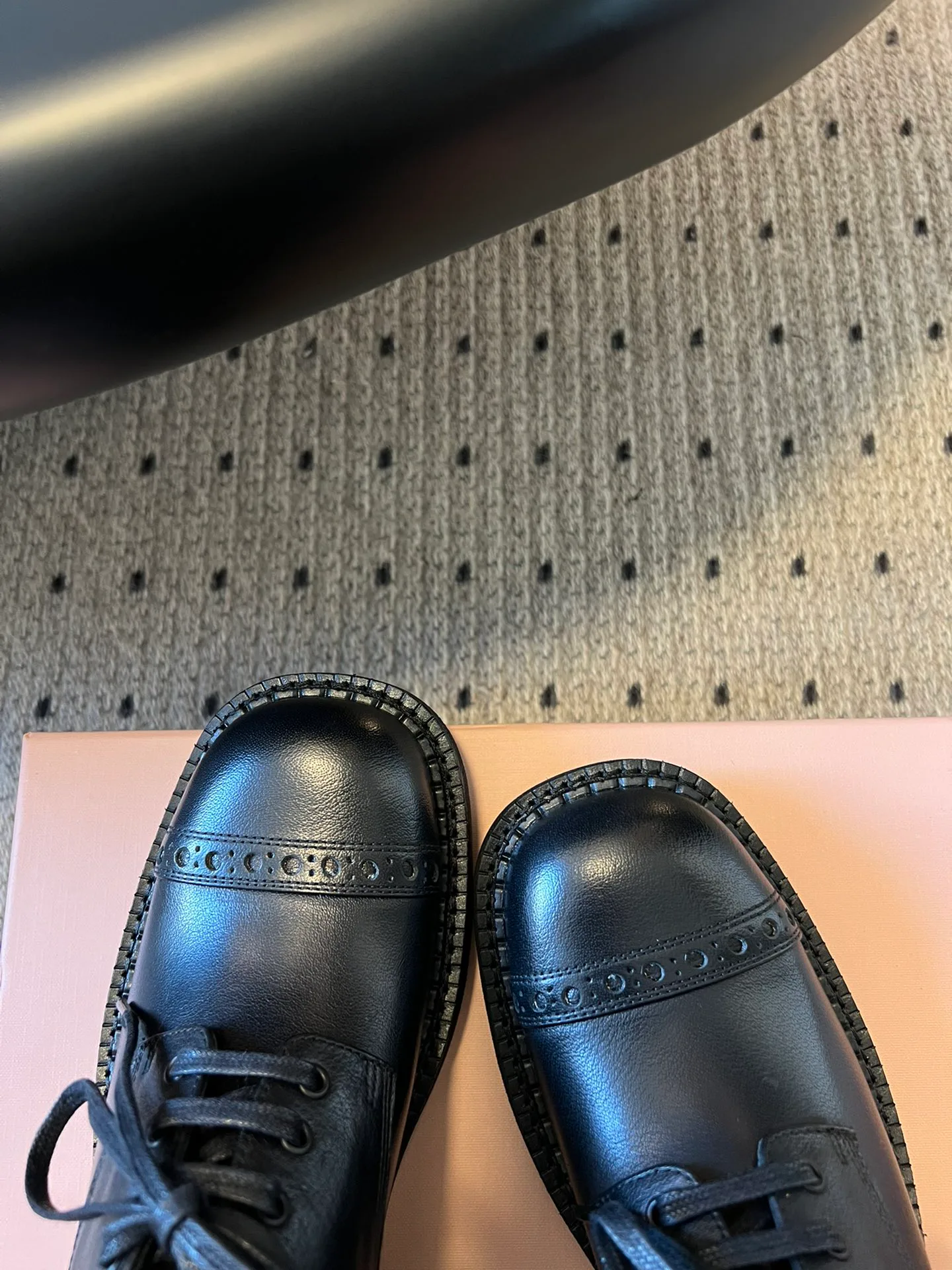 Обувь создаёт плавный силуэт, не утяжеляя ногу. Продольная шнуровка с тонкими декоративными элементами добавляет дерзости образу. Размерный ряд варьируется от 35 до 41, для размеров 40–41 возможно индивидуальное подгонка. Уход за туфлями требует аккуратного применения средств для кожи масляно-вощёной обработки и регулярной проверки подошвы на износ.