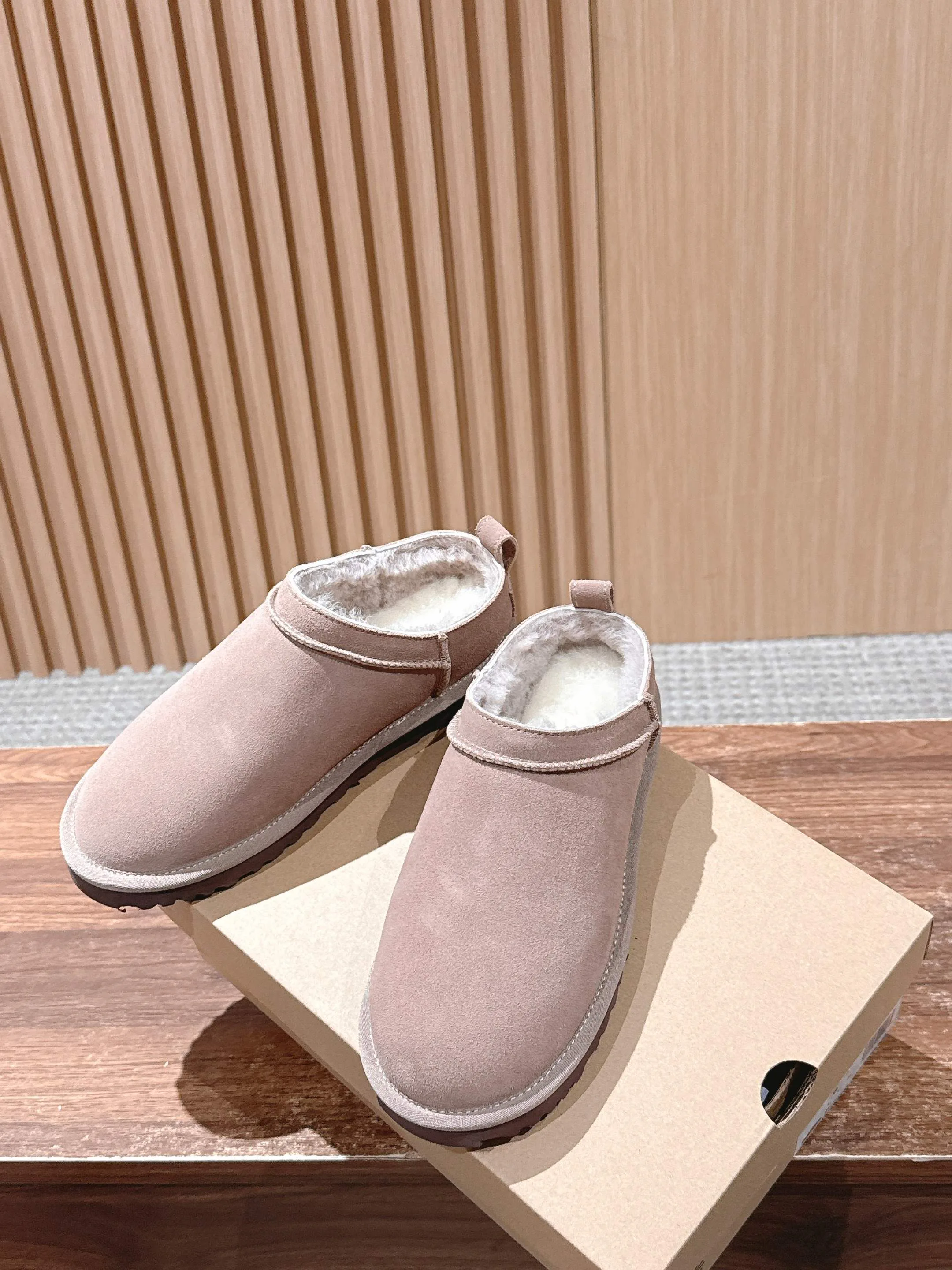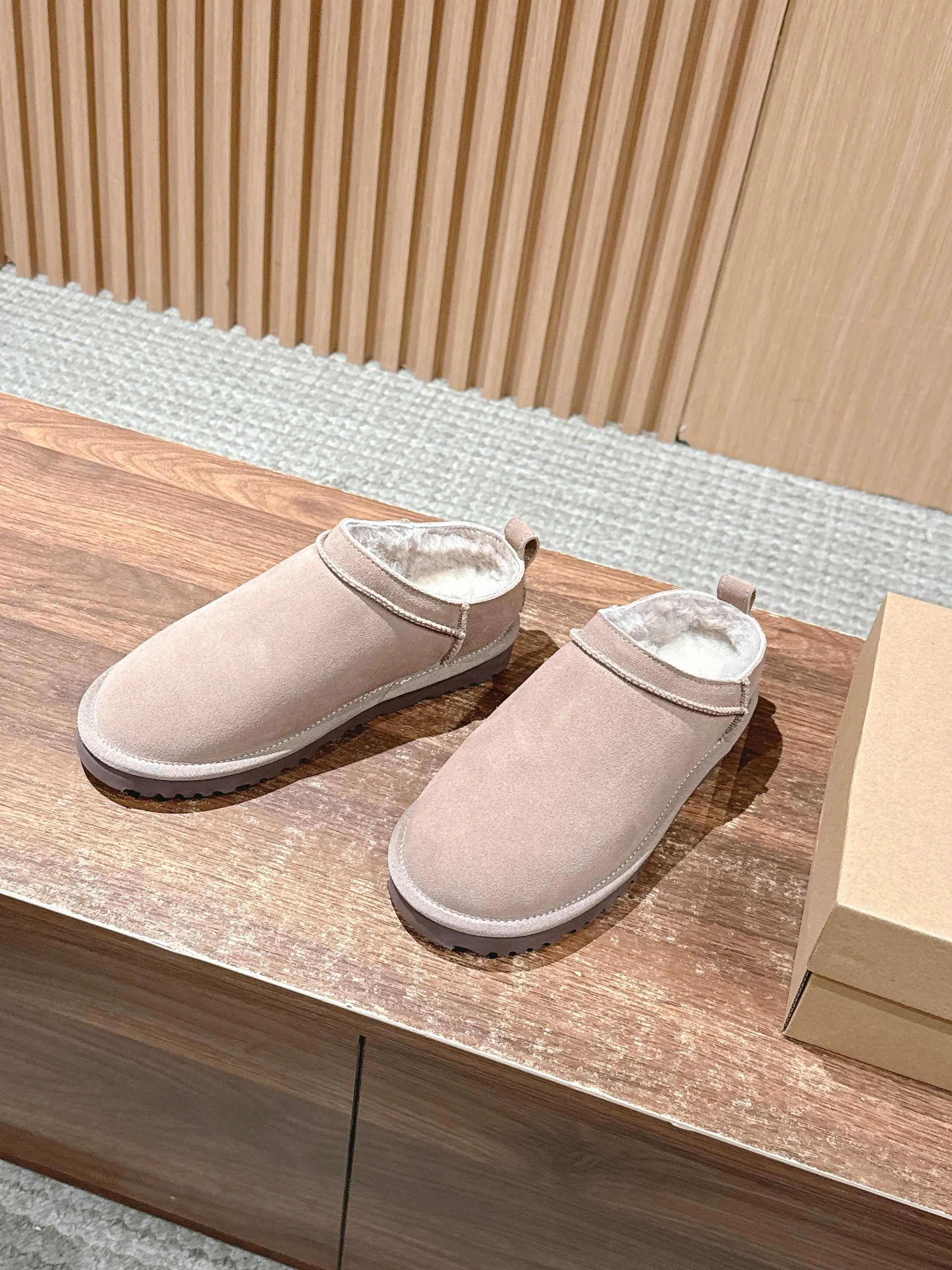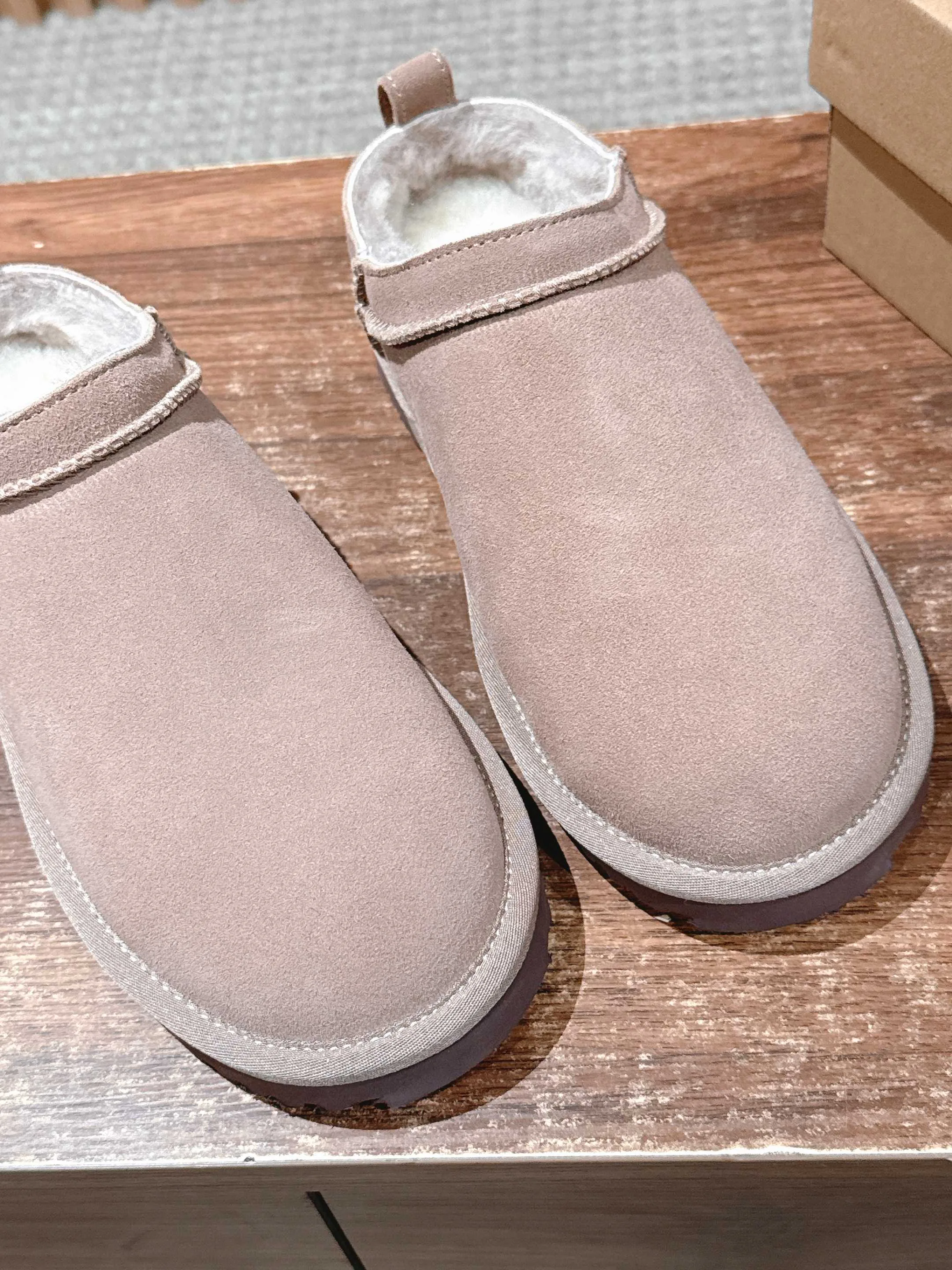 Замша верхнего слоя защищает от снега и влаги; шерсть внутри сохраняет тепло
