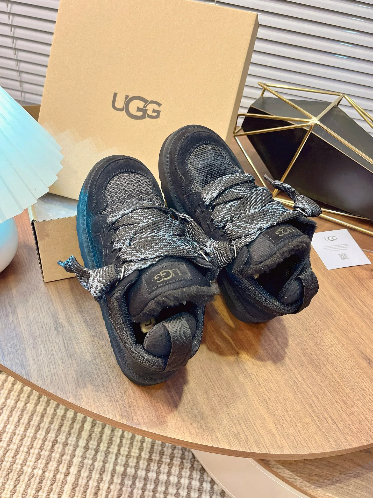 Верх выполнен из замши с меховой фактурой и переработанной сетчатой ткани. Задняя часть украшена тисненым логотипом, что подчеркивает характер бренда. Подошва из EVA легкая и амортизирующая, что добавляет удобство при ношении.