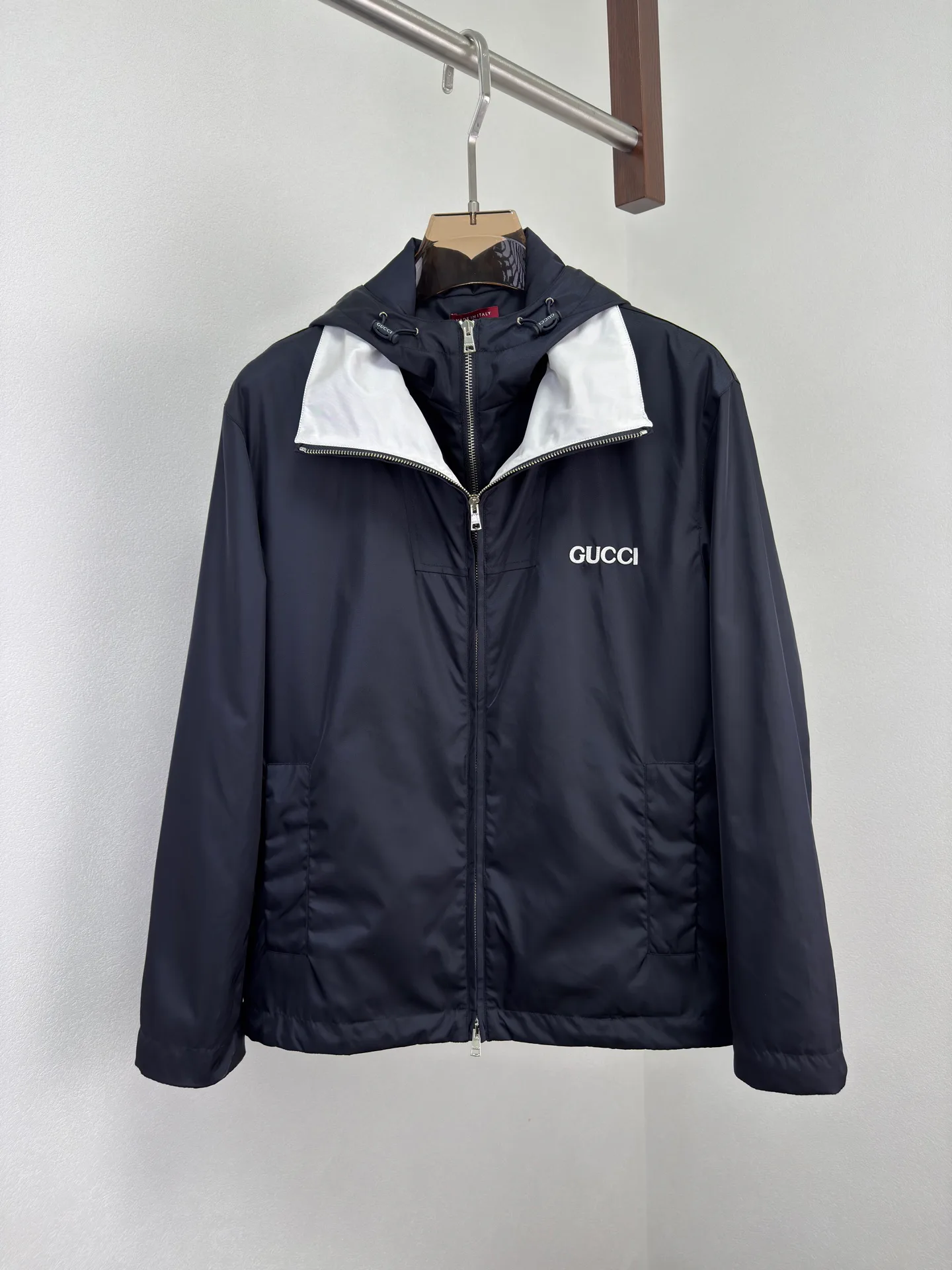 Куртка мужская GUCCI — нейлоновая модель с плотной диагональной фактурой и вышитым логотипом, создающая сдержанный городской образ. Съемный капюшон позволяет менять образ: после снятия капюшона изделие принимает стиль со стойкой воротника. Верхний материал — плотный диагональный нейлон, защищающий от ветра и влаги и дышащий. Подкладка сетчатая, состоит из смеси 70% нейлона и 30% эластана, приятна на ощупь. Тёмно-синий оттенок выглядит сдержанно и благородно, на груди присутствует вышитый логотип и декоративные детали. Внизу — внутренний шнур для регулировки посадки, а по бокам два широких кармана для телефона и ключей. Размеры: M–3XL (48–56).