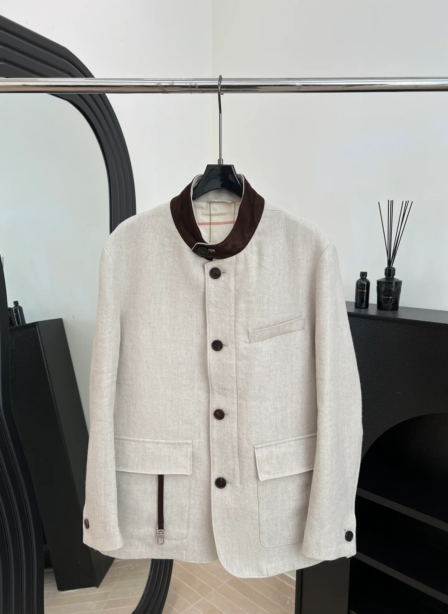 Куртка мужская LORO PIANA — новая осенне-зимняя модель из смеси льна и шерсти, где соотношение волокон составляет 55% льна и 45% шерсти. На задней части рукавов предусмотрены складки, которые подчеркивают конструктивный силуэт и создают плавные линии по всей длине изделия. С обеих сторон изделия расположены два кармана с клапанами, формирующие практичный функционал и аккуратный внешний вид. Внизу изделия внутри встроена небольшая складка, подчёркивающая повседневный силуэт. Размеры S–XXL доступны.