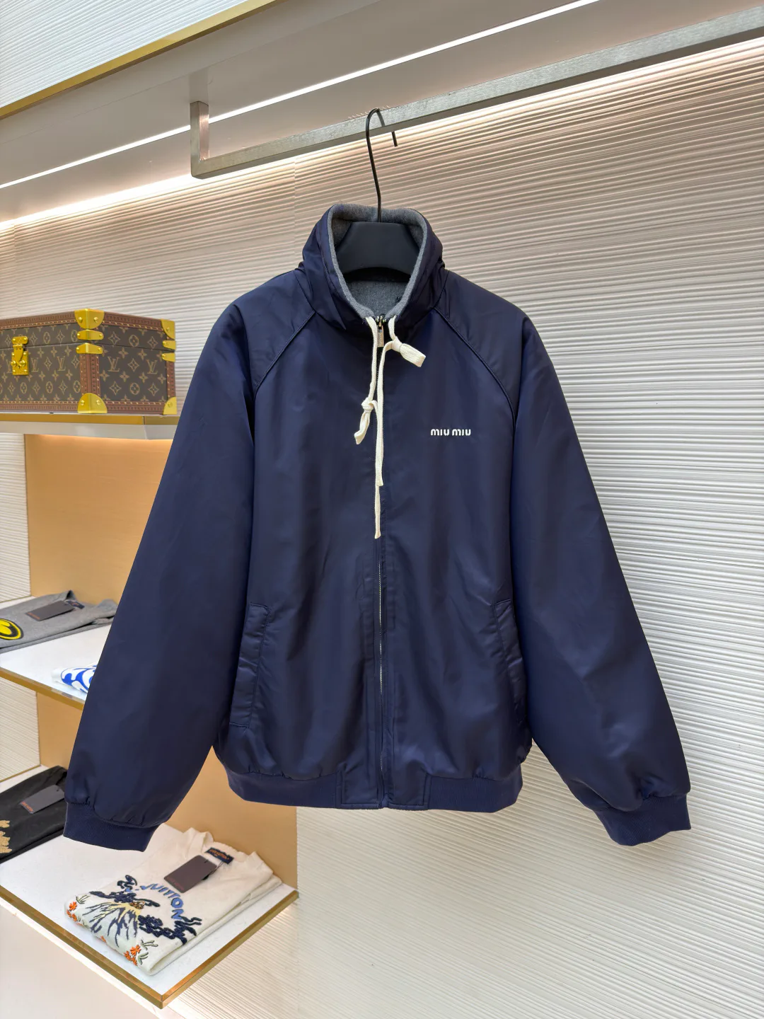 Куртка мужская MIU MIU — выполнена из плотной полиэстровой ткани с водоотталкивающей обработкой, поверхность матовая и ветроустойчивая.