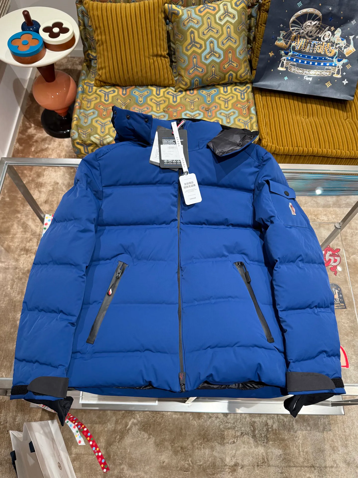 Куртка мужская MONCLER — куртка с капюшоном из пухового наполнителя, предназначенная для активного использования на открытом воздухе. Верхняя ткань выполнена из 100% высокоплотного полиэстера, она защитна от ветра; подкладка того же материала обеспечивает тепло и устойчивость конструкции, цвет синий. Крои и швы выполняются по 3D-интеллектуальной раскройке, допуски по ключевым швам достигают ±0,15 мм, а камера наполнения поддерживает постоянную температуру. Датчик давления воздуха регулирует силу наполнения, весь процесс контролируется системой мониторинга, что исключает образование комков пуха. На бегунке молнии нанесён фирменный знак, на левом рукаве размещена вышивка; капюшон формуется паровой обработкой, внутри установлен ветроустойчивый вкладыш, нижний край и манжеты регулируются шнурками и липучками.