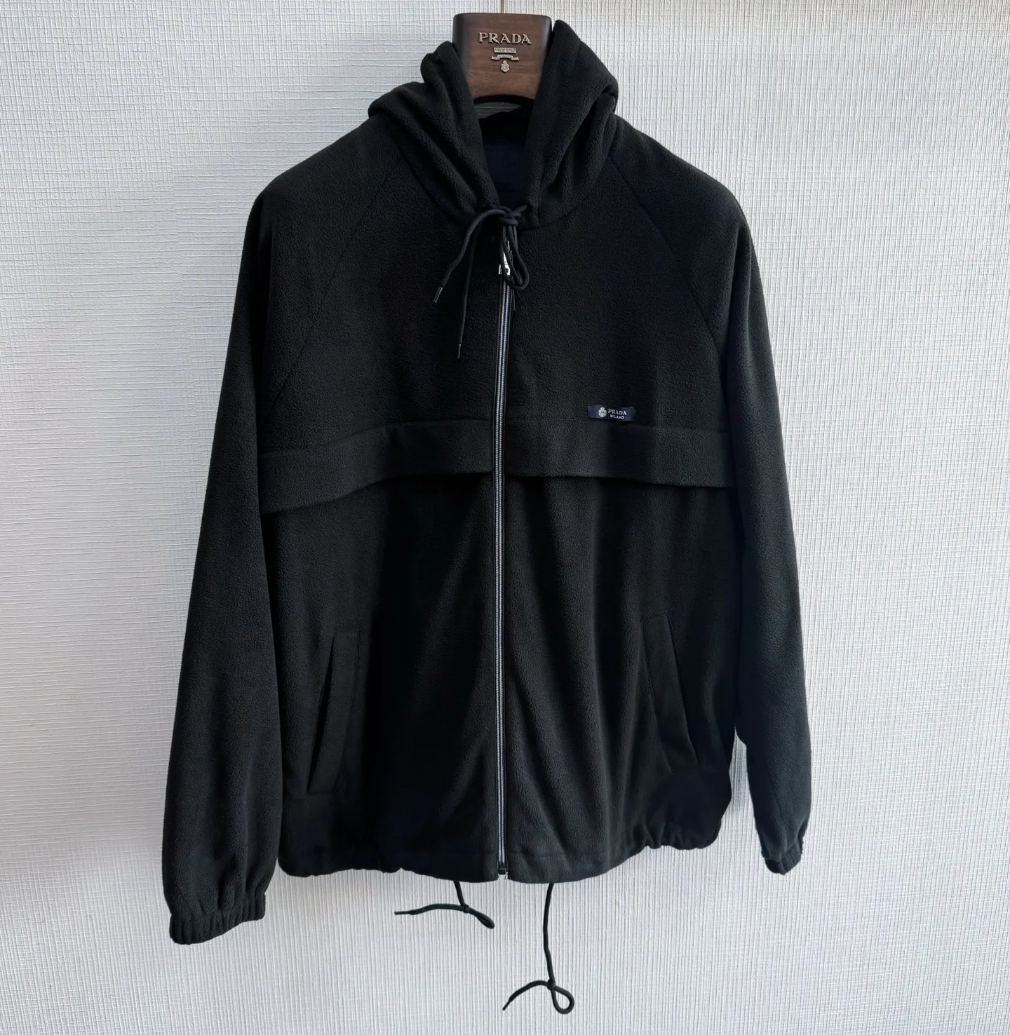 Куртка мужская PRADA — модель из коллекции 25FW изготовлена из ткани поларфлис на основе смеси полиэстера и шерсти. Материал проходит очистку, предварительную обработку, а затем механическое расчесывание и ворсование для создания объемного и мягкого ворса. Ткань равномерно окрашивается для стойкости цвета, после чего подвергается финальной отделке, включая термостабилизацию и каландрирование, для улучшения внешнего вида и тактильных ощущений. Изделие собирается из подготовленных деталей с тщательным совмещением швов для ровной посадки.