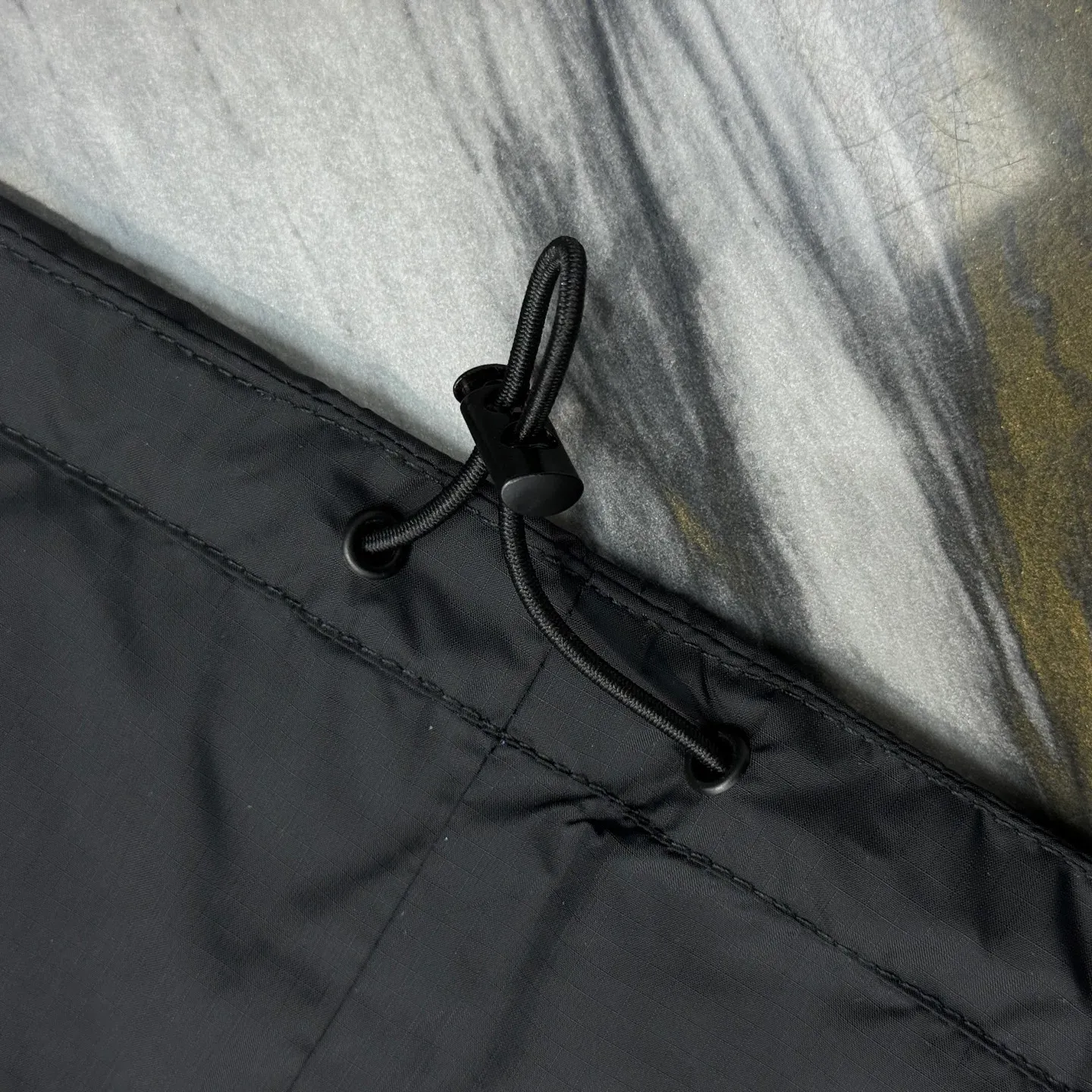 Куртка изготовлена из 100% нейлона, что обеспечивает ей прочность и стойкость к износу. Умеренная толщина ткани делает её идеальной для носки в весенний и осенний сезоны. Свободный крой и реглановые рукава обеспечивают комфорт и свободу движений во время активных занятий.