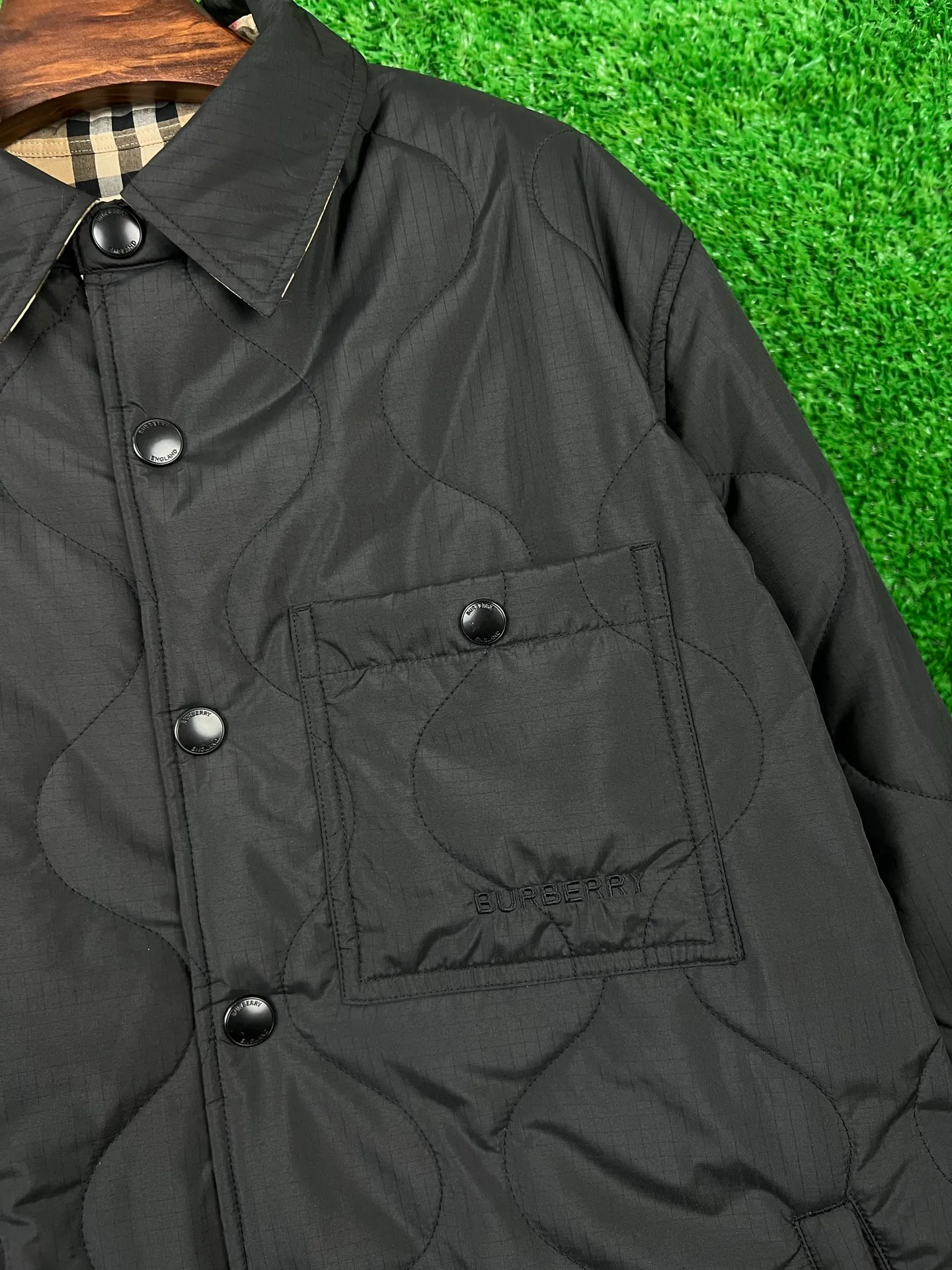 - Эмблема с вышивкой BURBERRY на груди, что подчеркивает оригинальность и качество изделия.