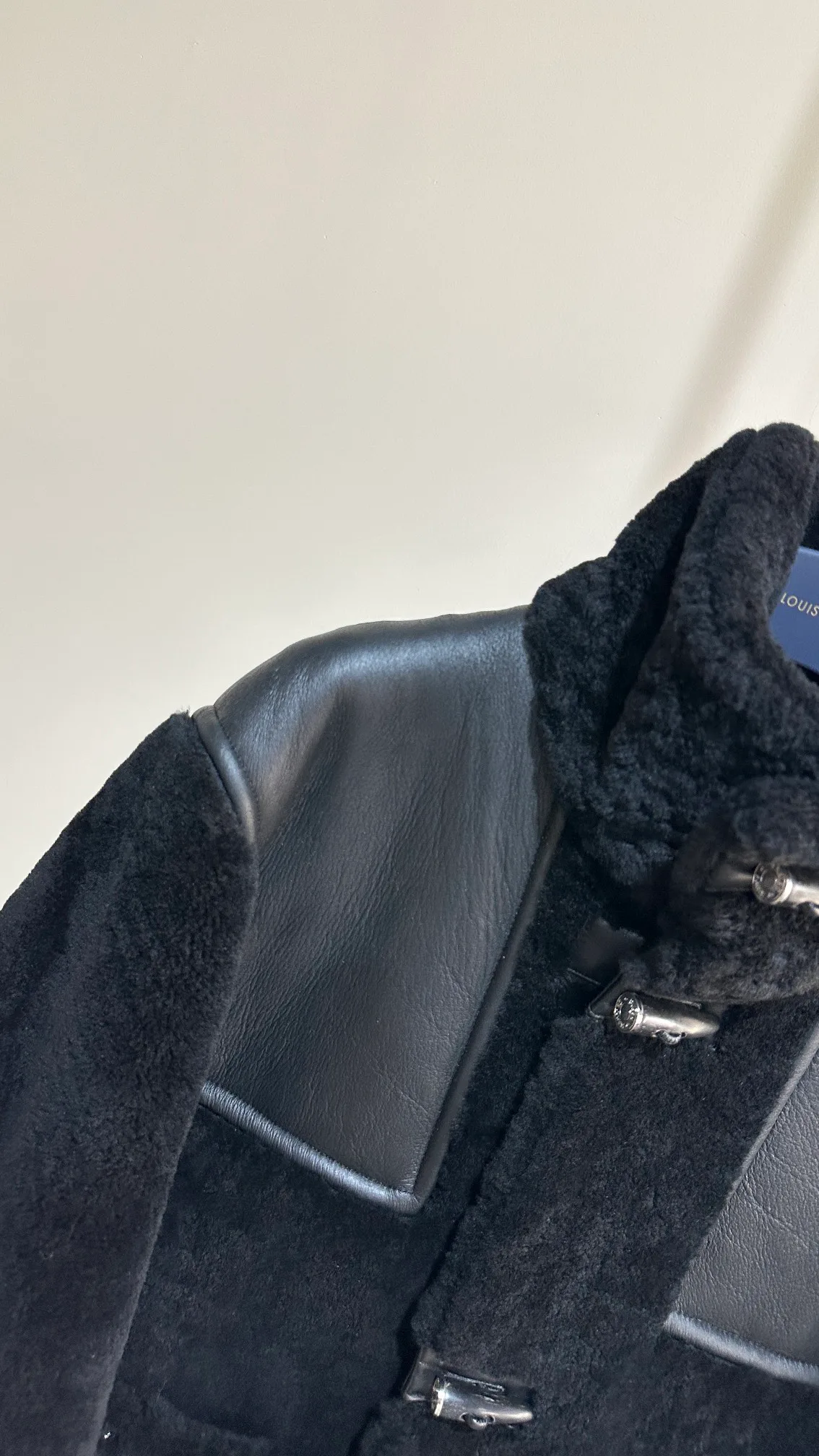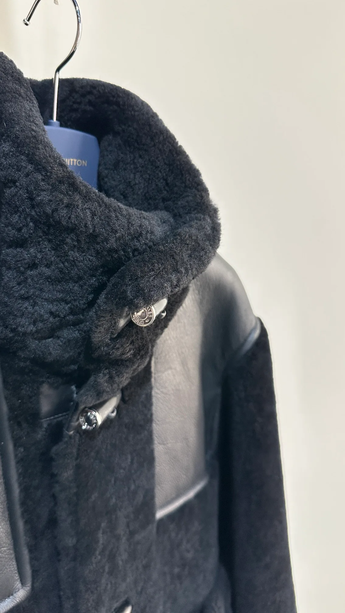 Куртка выполнена с использованием массированных пуговиц из буйвольего рога, каждая из которых отличается по текстуре и оттенку, подчеркивая уникальность изделия. Размерная сетка охватывает EU 48–56. Для ухода рекомендуется бережное обращение и химчистка у специалистов по кожаным изделиям.