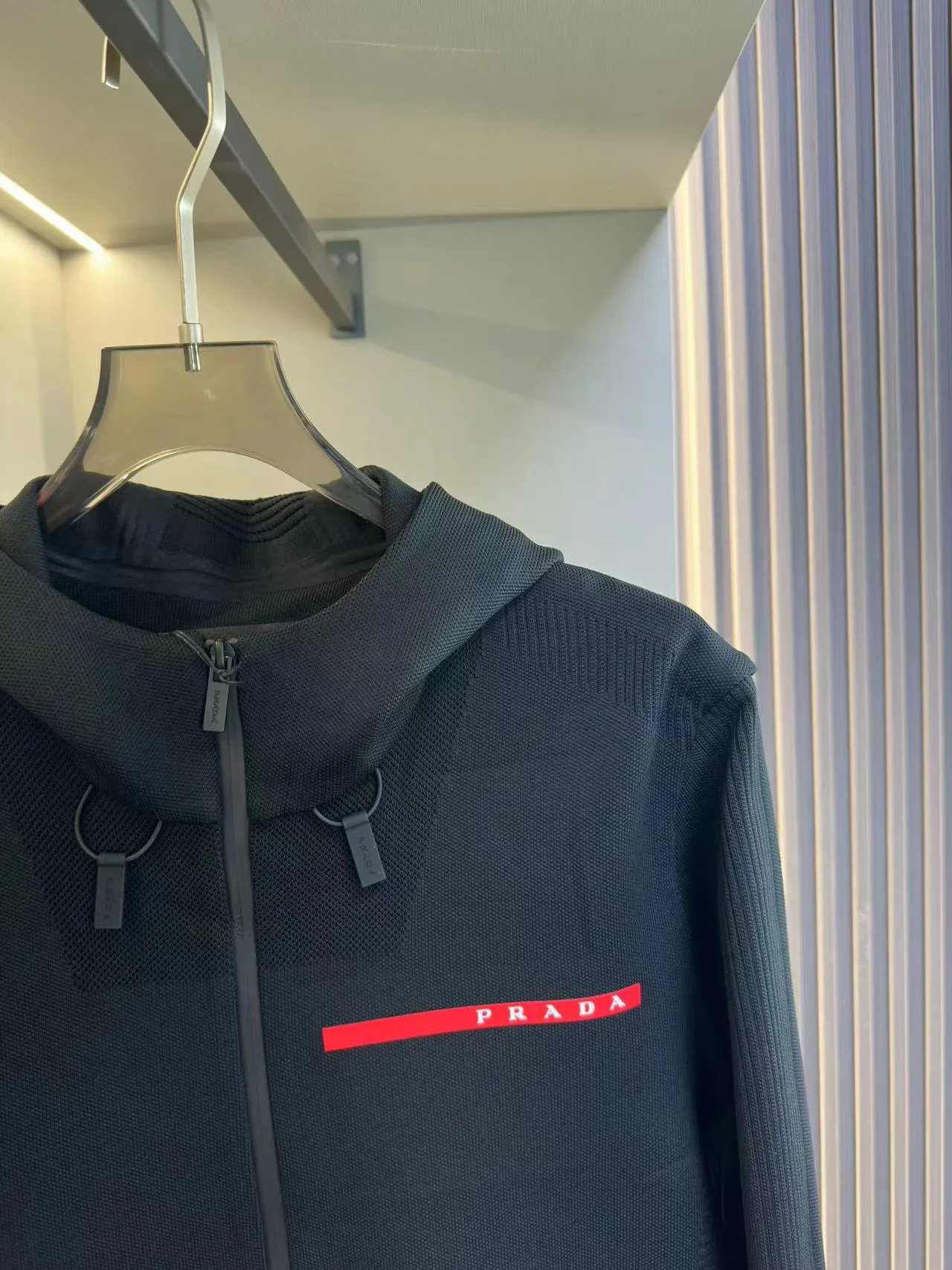 Комплект сочетает спортивный комфорт и модный дизайн PRADA, позволяя выделяться в любой обстановке.