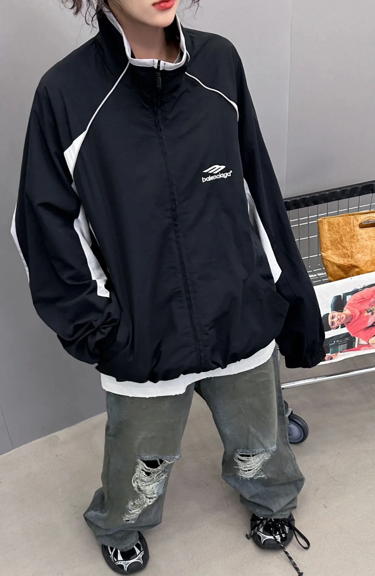 Дизайн и крой: куртка в стиле школьной формы с спортивной эстетикой. Высокий воротник, молния по всей длине, рукава реглан для свободы движений. Свободный оверсайз крой подходит для многослойной одежды.