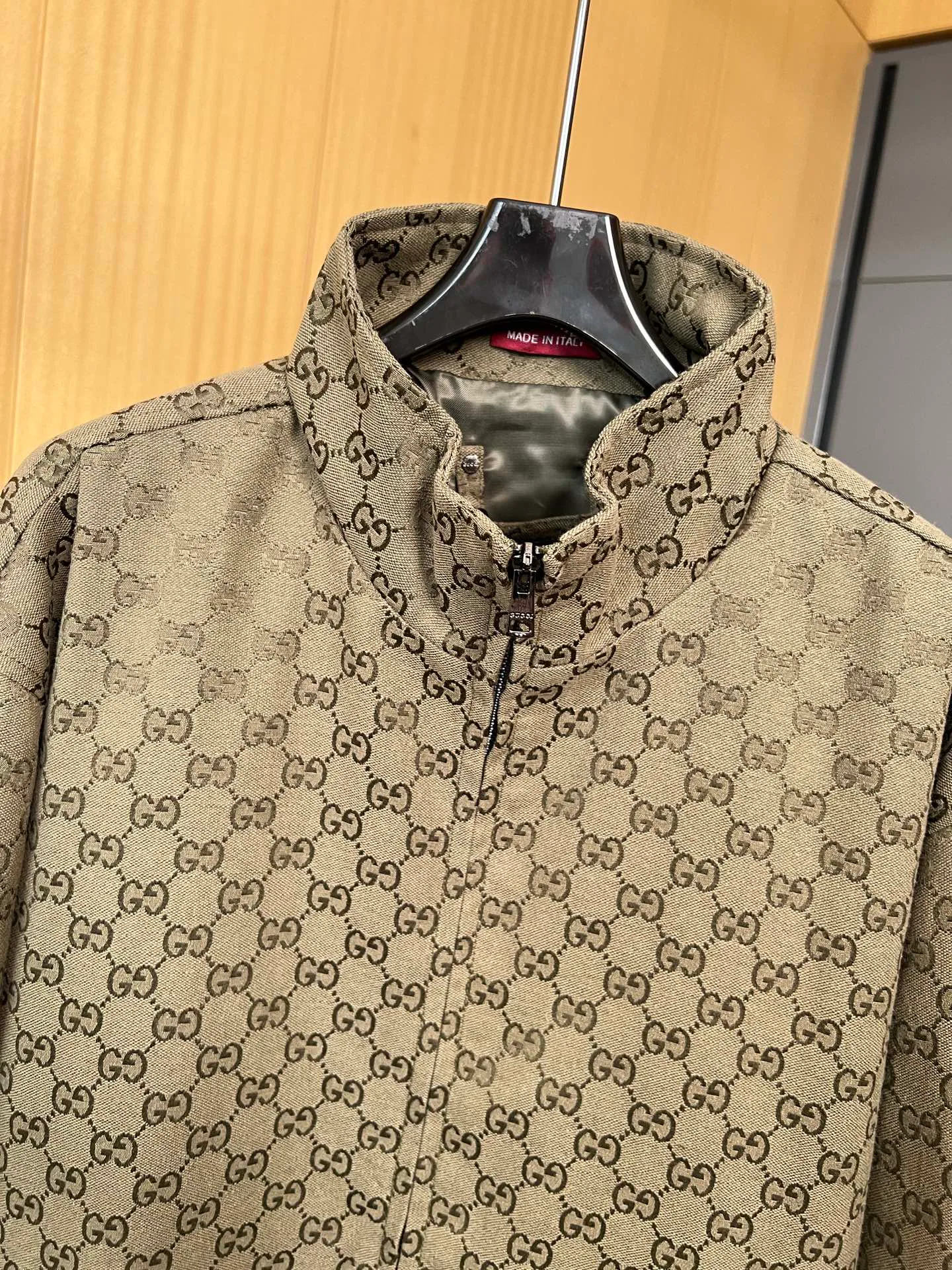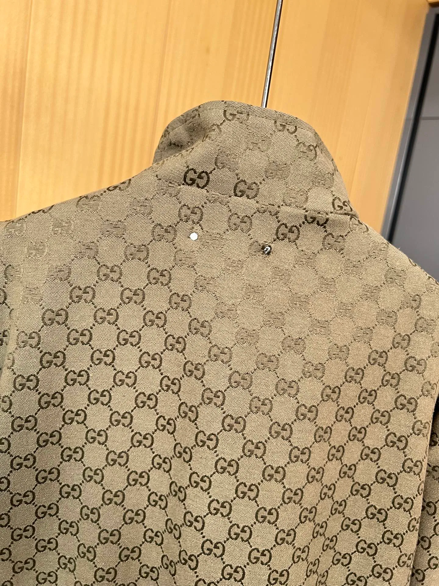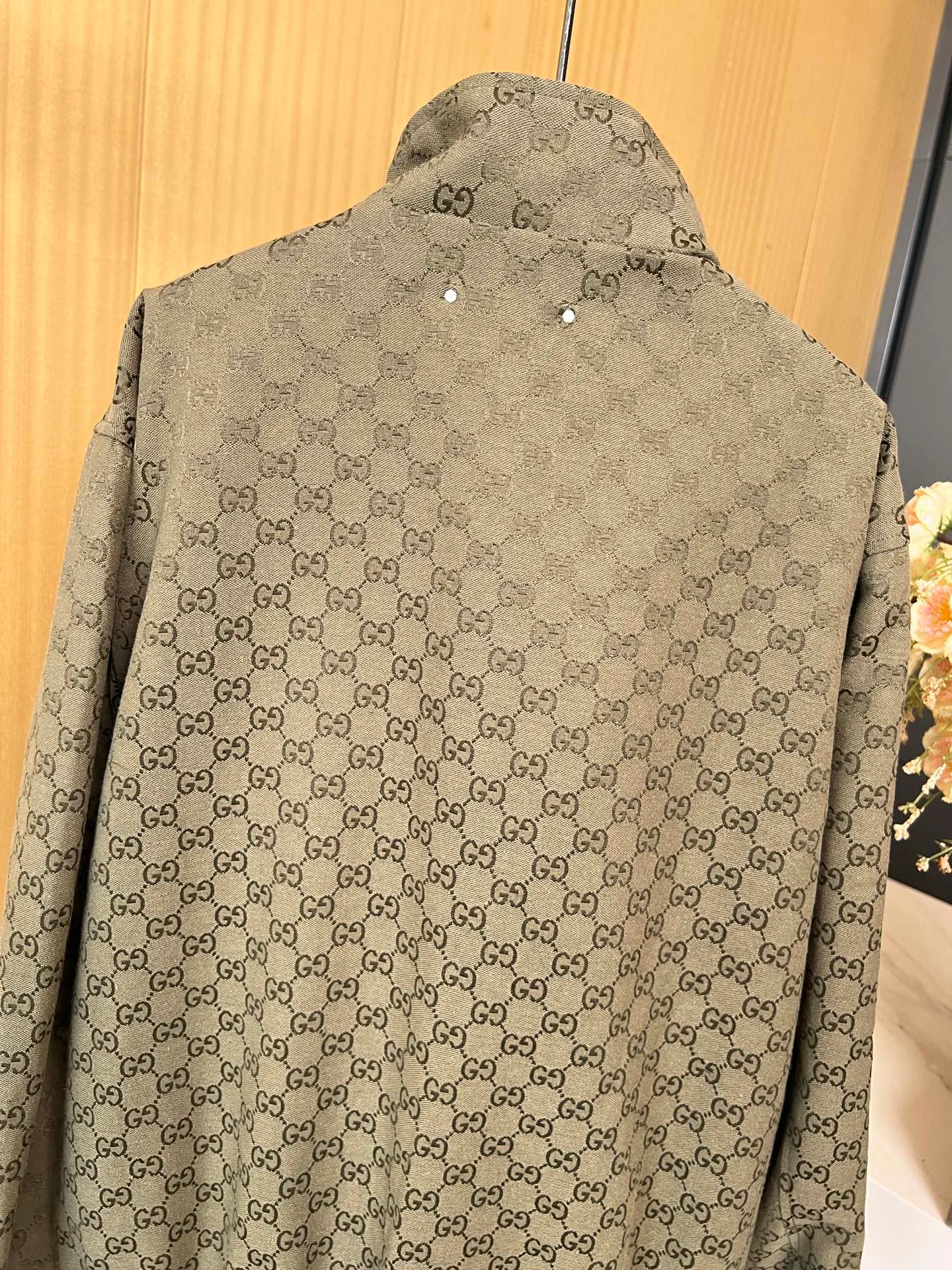 - Дизайн: воротник-стойка и жаккардовый узор с переплетением логотипа GG, подчёркивающий узнаваемость бренда.