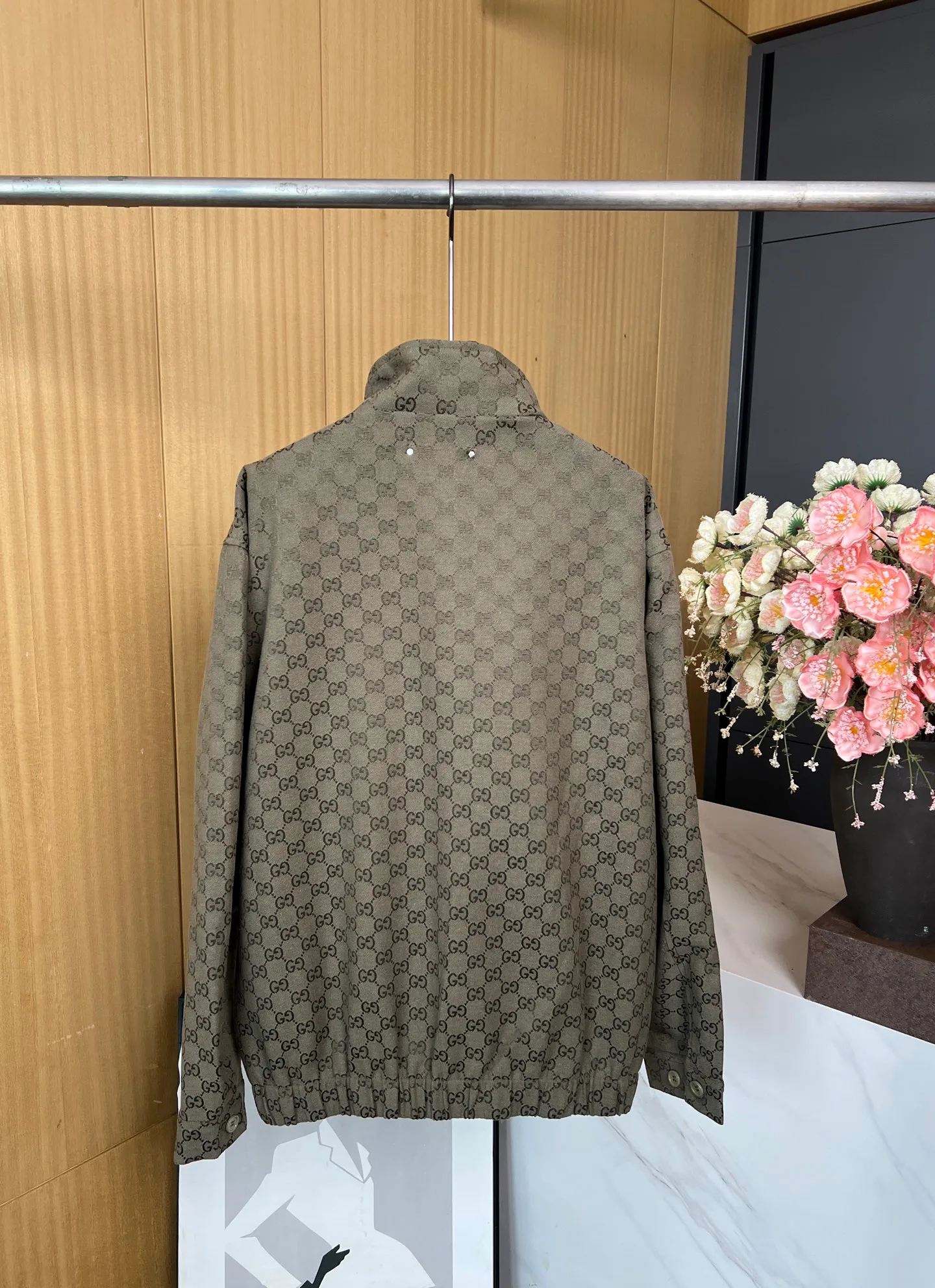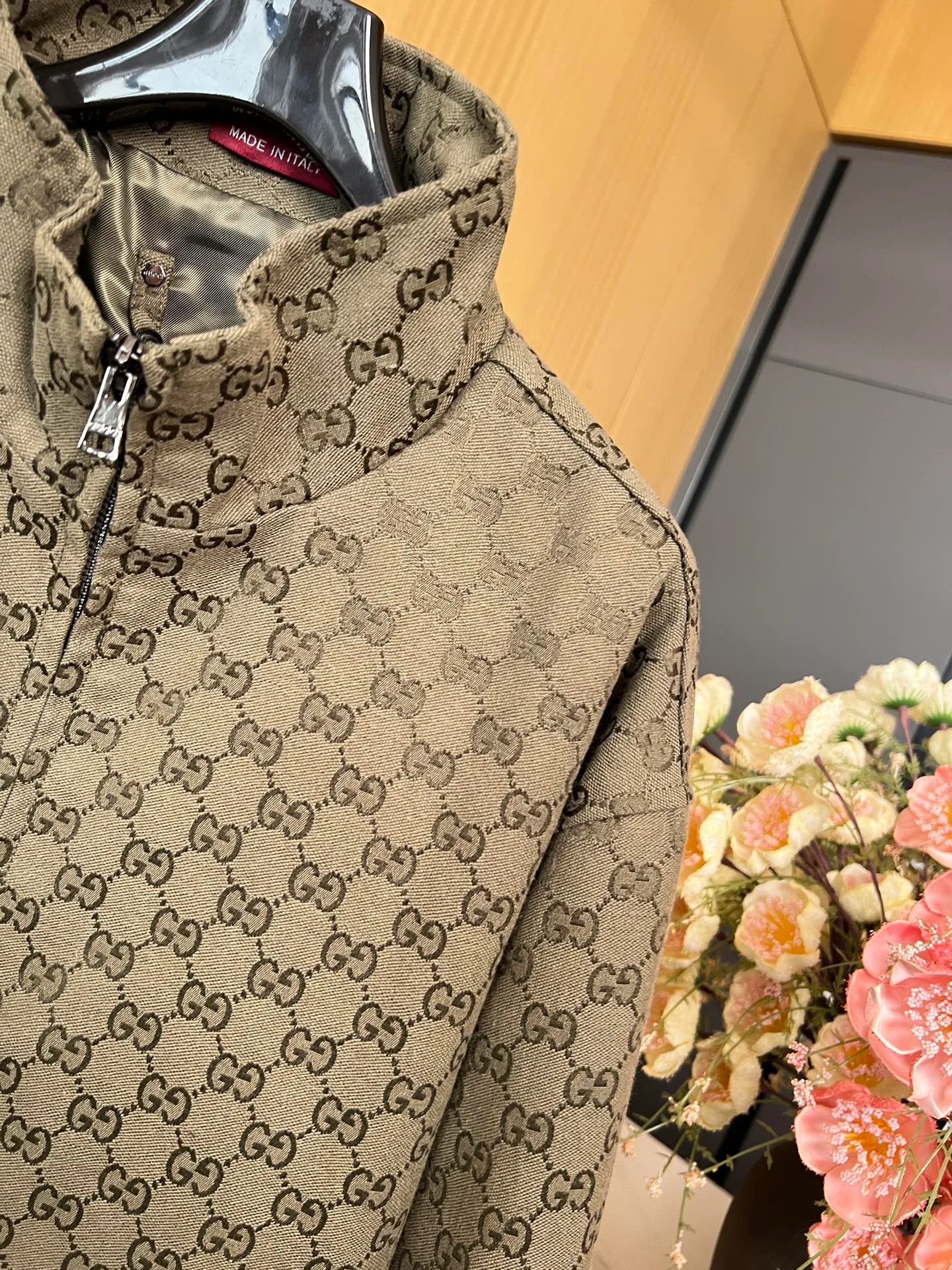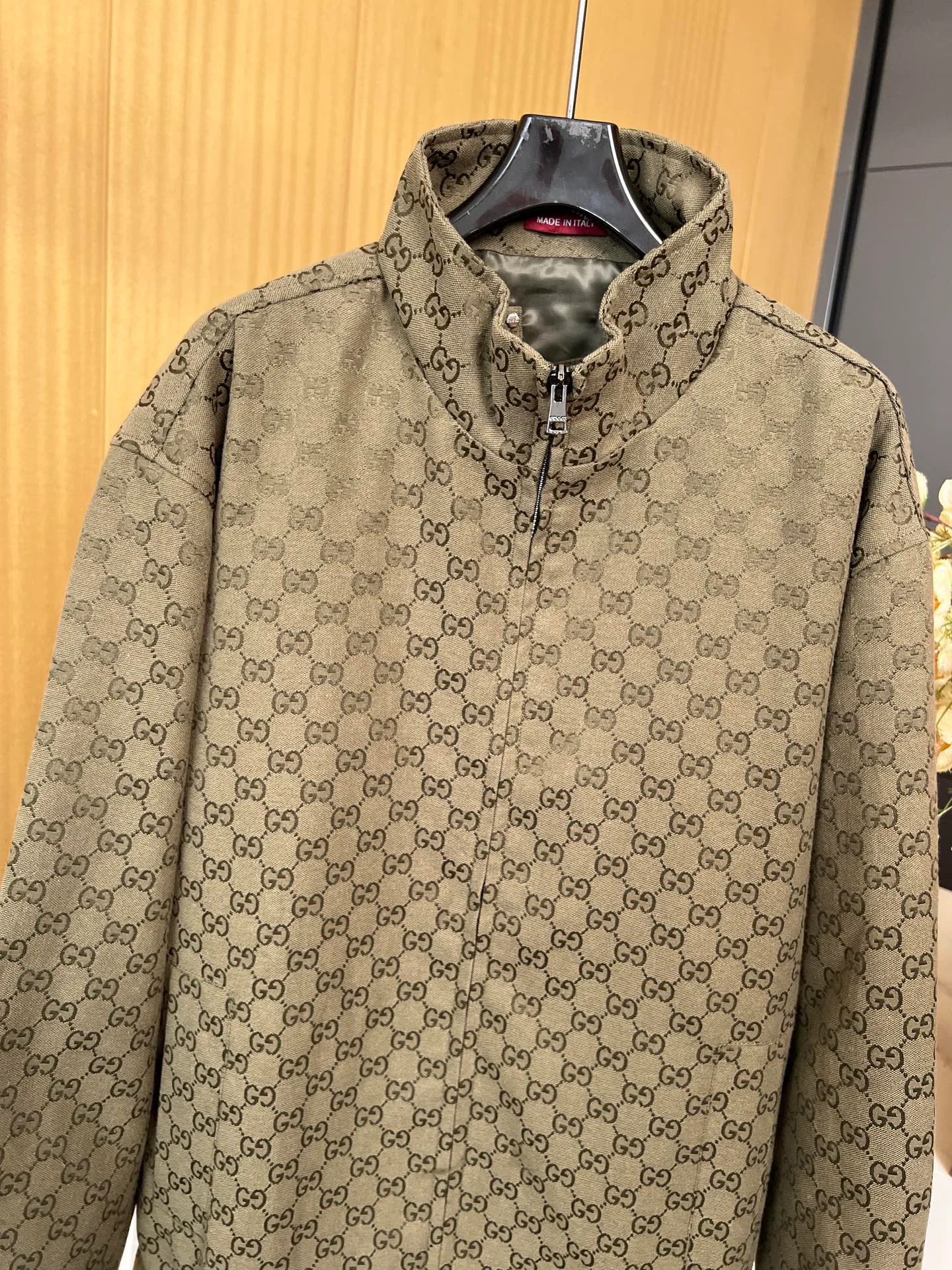 - Дизайн: воротник-стойка и жаккардовый узор с переплетением логотипа GG, подчёркивающий узнаваемость бренда.