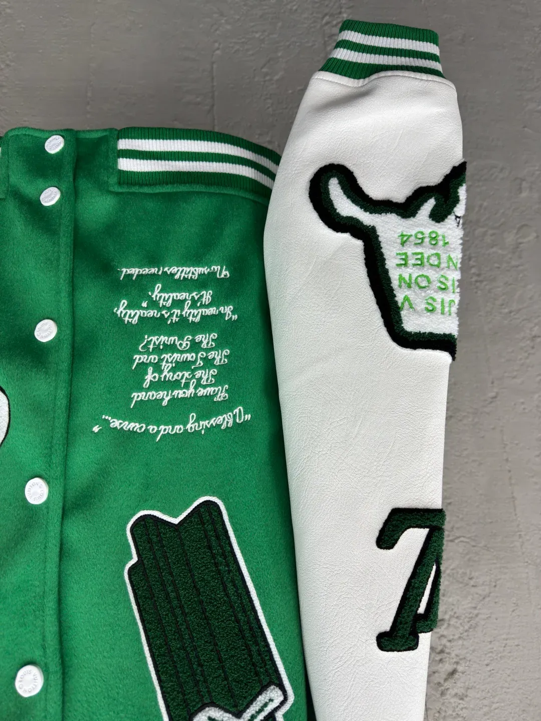 Изготовлена из материалов высокого качества: элегантный накладной рукав из зернистой кожи и мягкий кашемир. Декоративные элементы, включая вышитые узоры, создают динамичный образ.