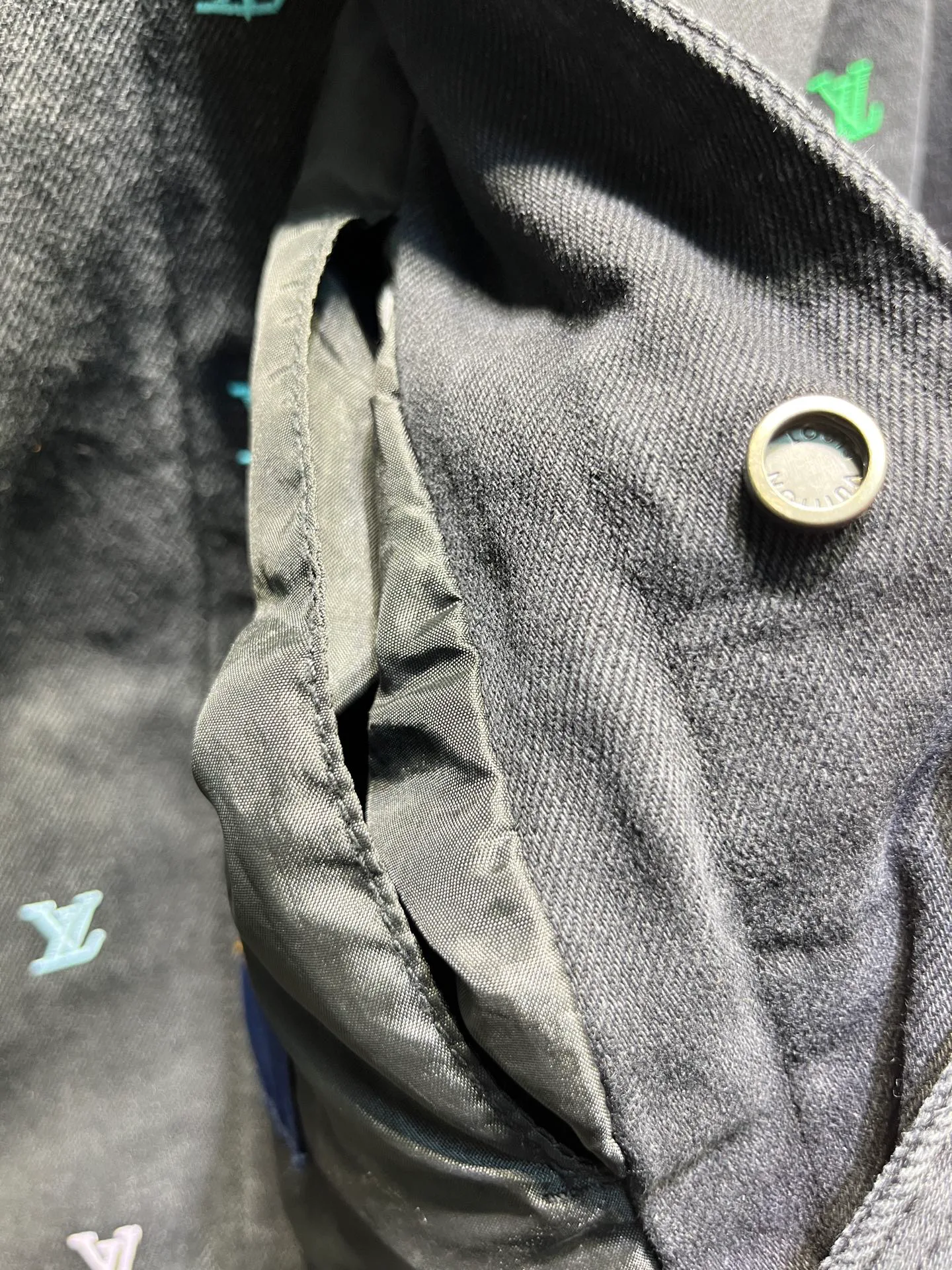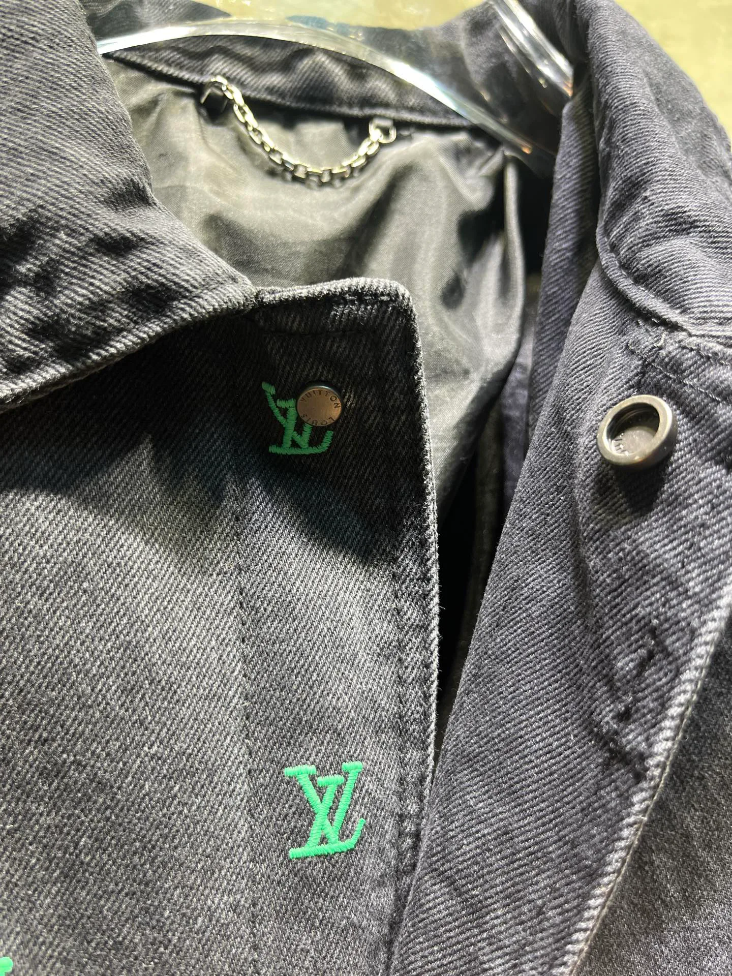 Особенность модели — градиентный дизайн с вышитыми буквами, который добавляет элемент современного искусства к классической джинсовой куртке. Этот акцент подчёркивает уникальность и авторский стиль LOUIS VUITTON.