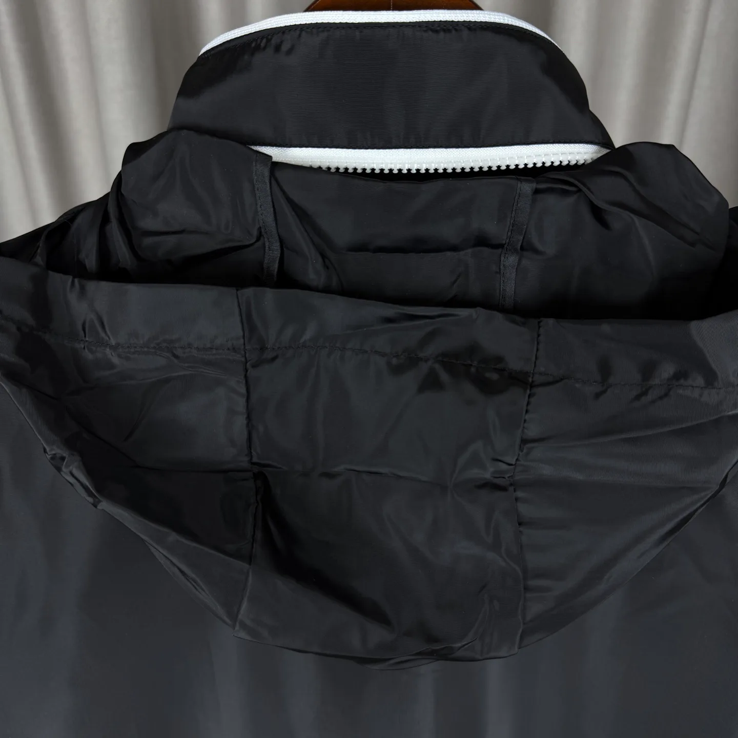 - Воротник стоячий, можно превратить в капюшон скрытым шнуром; при убранном капюшоне воротник образует элегантный силуэт.