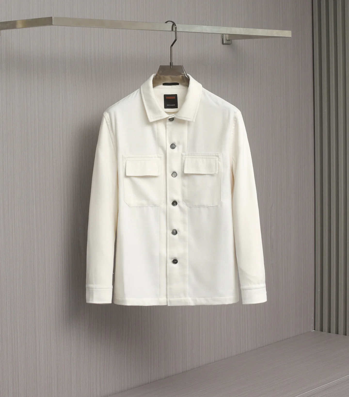 Куртка-рубашка сочетает практичность осени и зимы с утончённым внешним видом. Её можно носить как самостоятельную вещь в тёплую погоду или с пуловером и пальто в холодные дни. Передаёт уверенность и индивидуальность, акцент на текстуре ткани и посадке.
