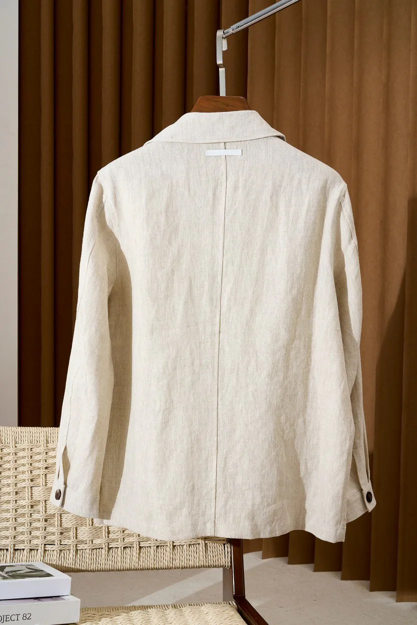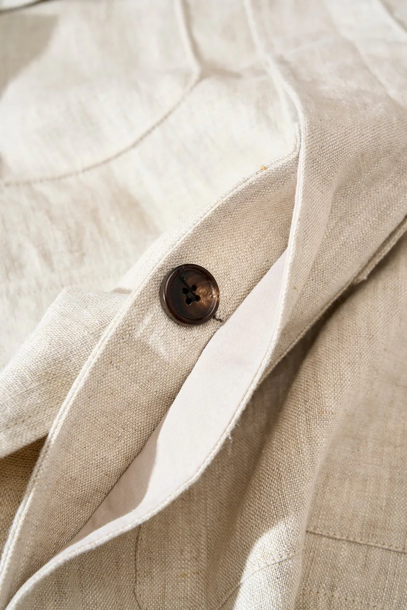 Модель Traveller — короткий жакет для путешественников. Материал легкий и прочный лен, обеспечивающий хорошую вентилируемость и приятное ощущение на коже. Дизайн с свободными линиями и изящным кроем подчеркивает стиль и придает образу легкость. Широкие манжеты и естественная текстура материала добавляют глубину и современные акценты.