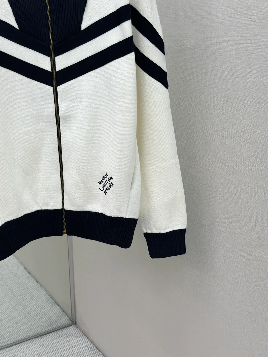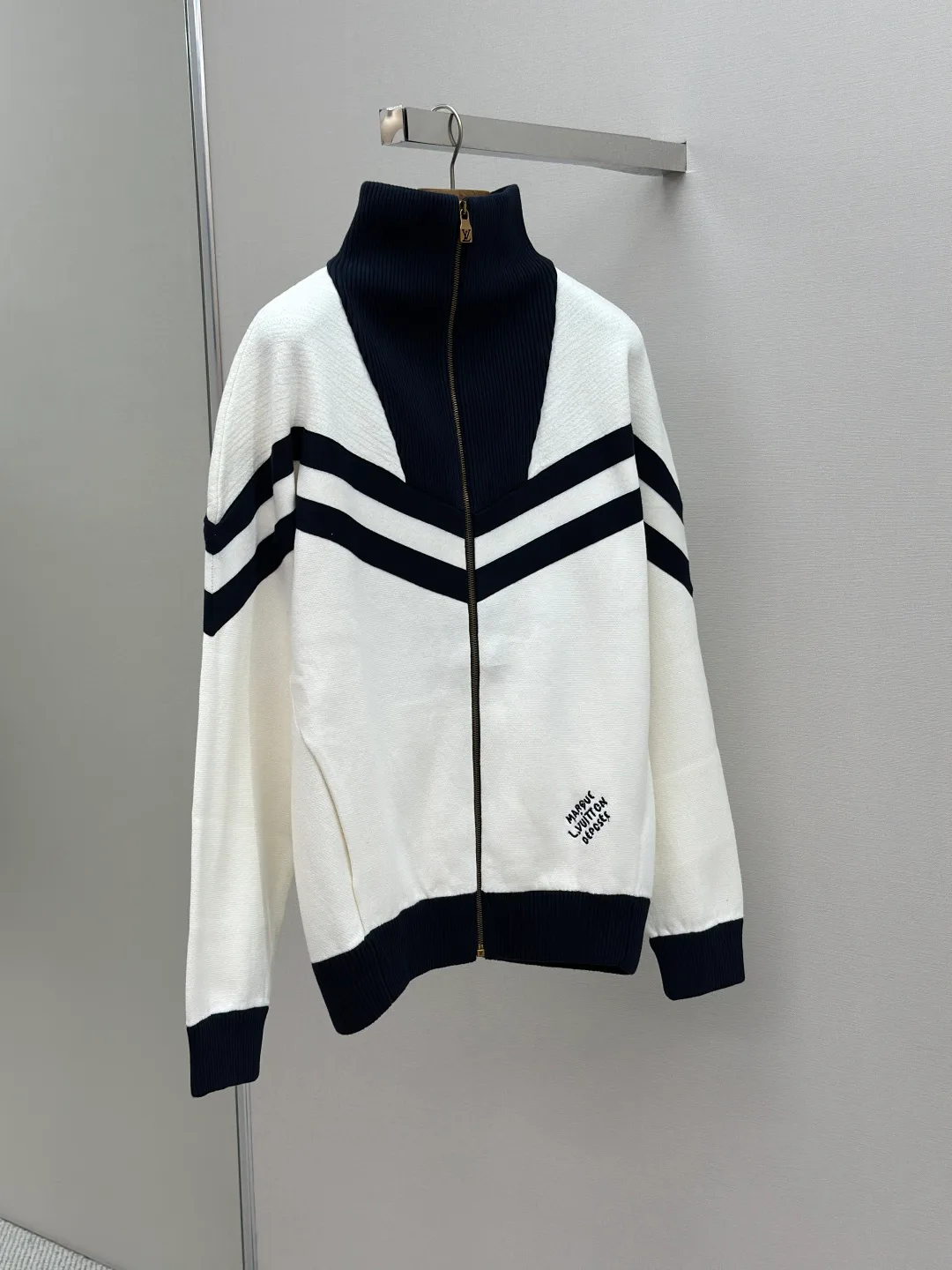 Жакет оборудован металлической молнией с логотипом LV для удобства застегивания. Эмблема “Marque L.Vuitton déposée” вышита на нижнем крае, подчеркивая принадлежность к бренду. Стандартный крой обеспечивает комфортную посадку, а два боковых кармана добавляют практичности. Многослойные текстуры создают динамичный образ, подходящий для повседневной носки и более формальных случаев. Размеры S, M, L, XL.
