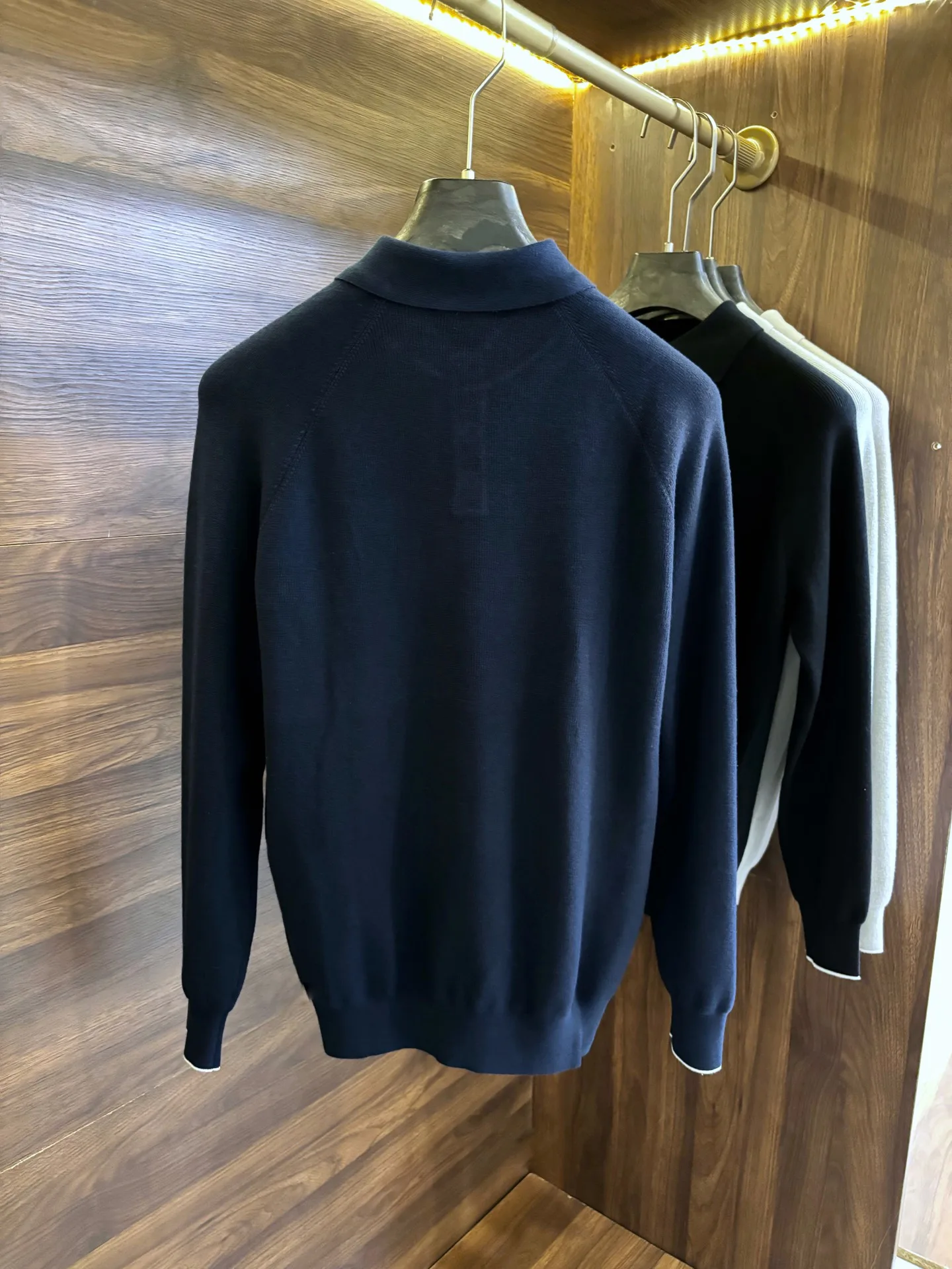 Узорный воротник Polo придает изделию аккуратность, смягчая традиционный деловой стиль. Ракушечные пуговицы с гравировкой логотипа подчеркивают статус владельца. Пуловер имеет слегка расслабленный силуэт, который подходит и для деловых мероприятий, и для встреч с друзьями. Доступен в цветах: синий, черный, серый и бежевый; размеры от M до 4XL соответствуют европейской размерной сетке 48–58.